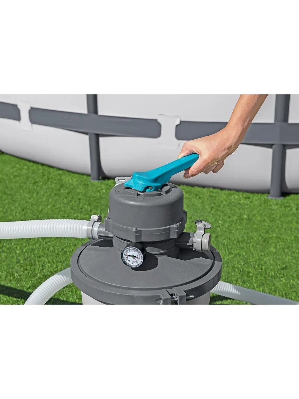 - Эффективная очистка: благодаря 6-ходовому клапану и предварительному фильтру со съемным сетчатым фильтром, обеспечивается лучшая очистка и защита насоса.