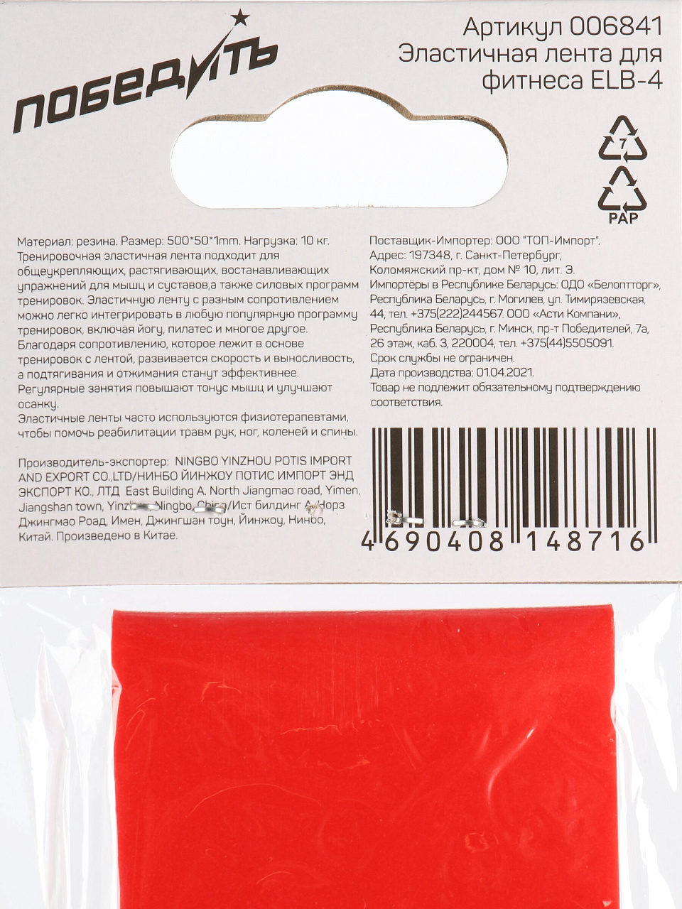 Вы можете приобрести «Эластичная фитнес лента 50х5х0.1 см, резина, 10 кг, красная, Победитъ, 006841» и другие товары в нашем интернет-магазине в Железногорске по низким ценам и с бесплатным самовывозом.