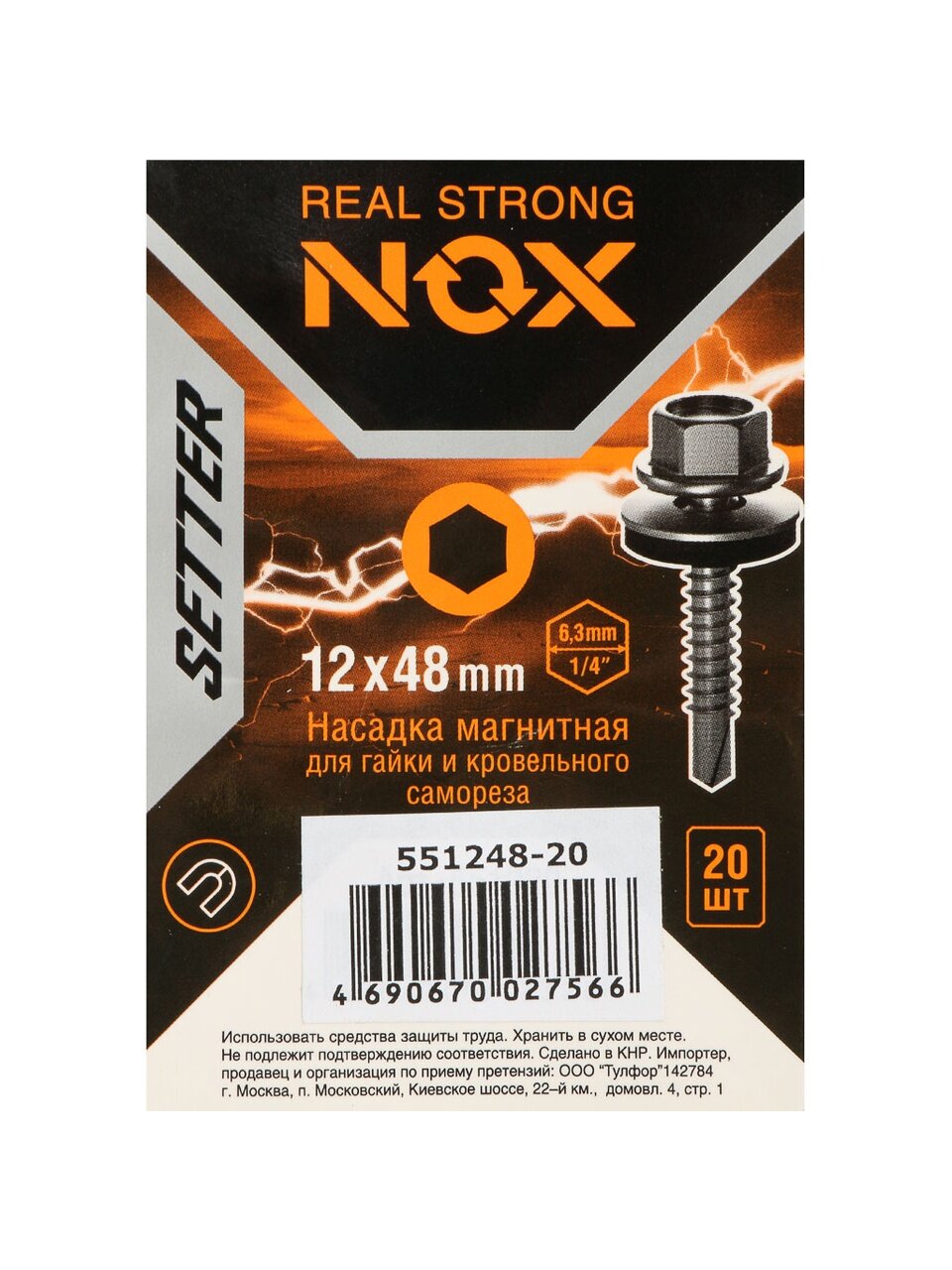 Ключ-насадка для кровельных саморезов Nox 12х48 мм — точная фиксация, магнитный адаптер, 20 шт. в наборе для быстрой и надёжной сборки кровли.