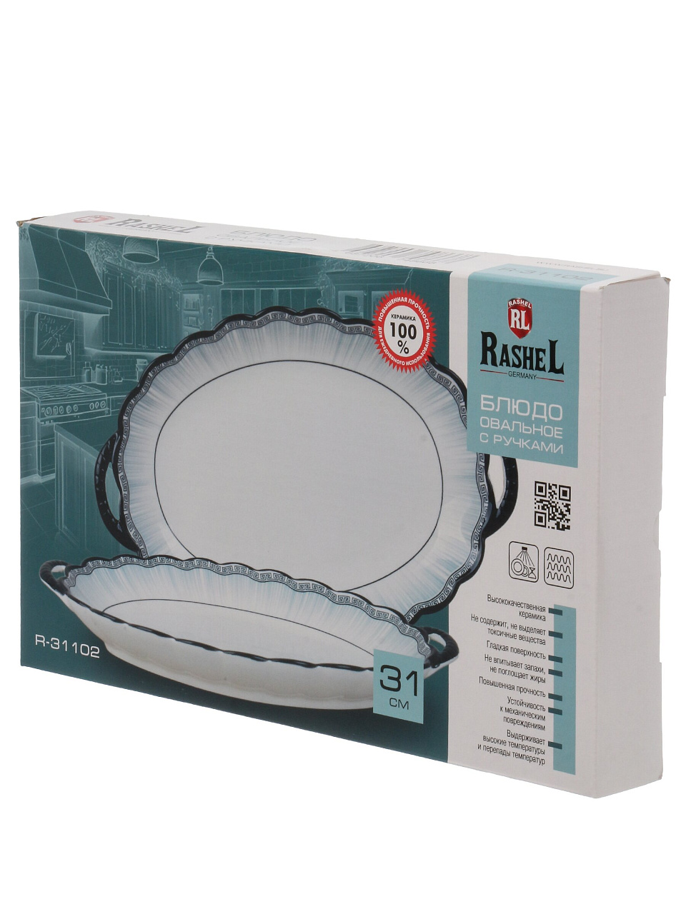 Вы можете приобрести «Блюдо керамика, овальное, 31 см, с ручками, RasheL, R-31102» и другие товары в нашем интернет-магазине в Железногорске по низким ценам и с бесплатным самовывозом.