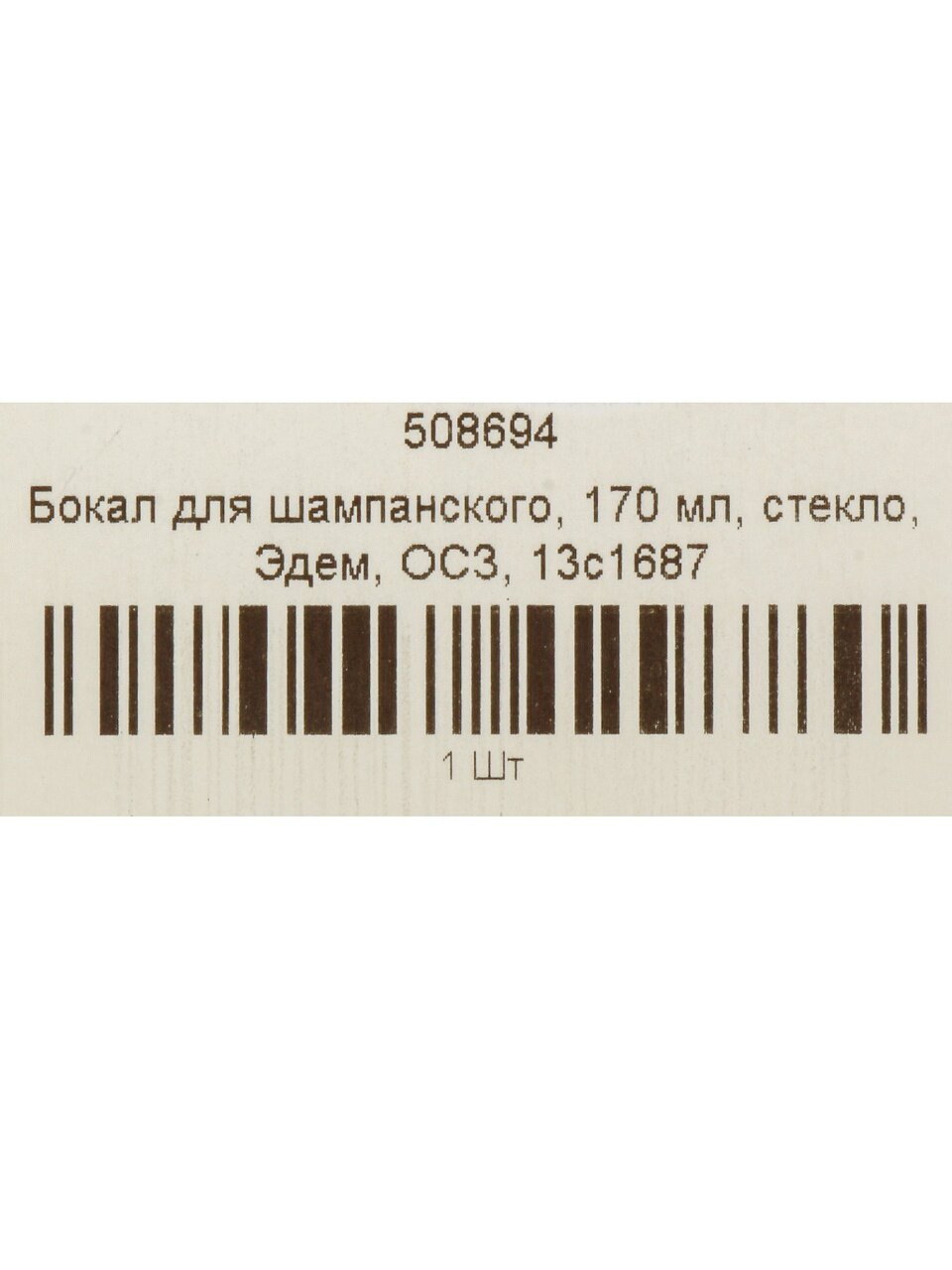 Бокал для шампанского Эдем ОСЗ 170 мл — стиль для сервировки, прочное стекло, подходит для мытья в посудомоечной машине. Идеальный подарок и выбор для праздника.