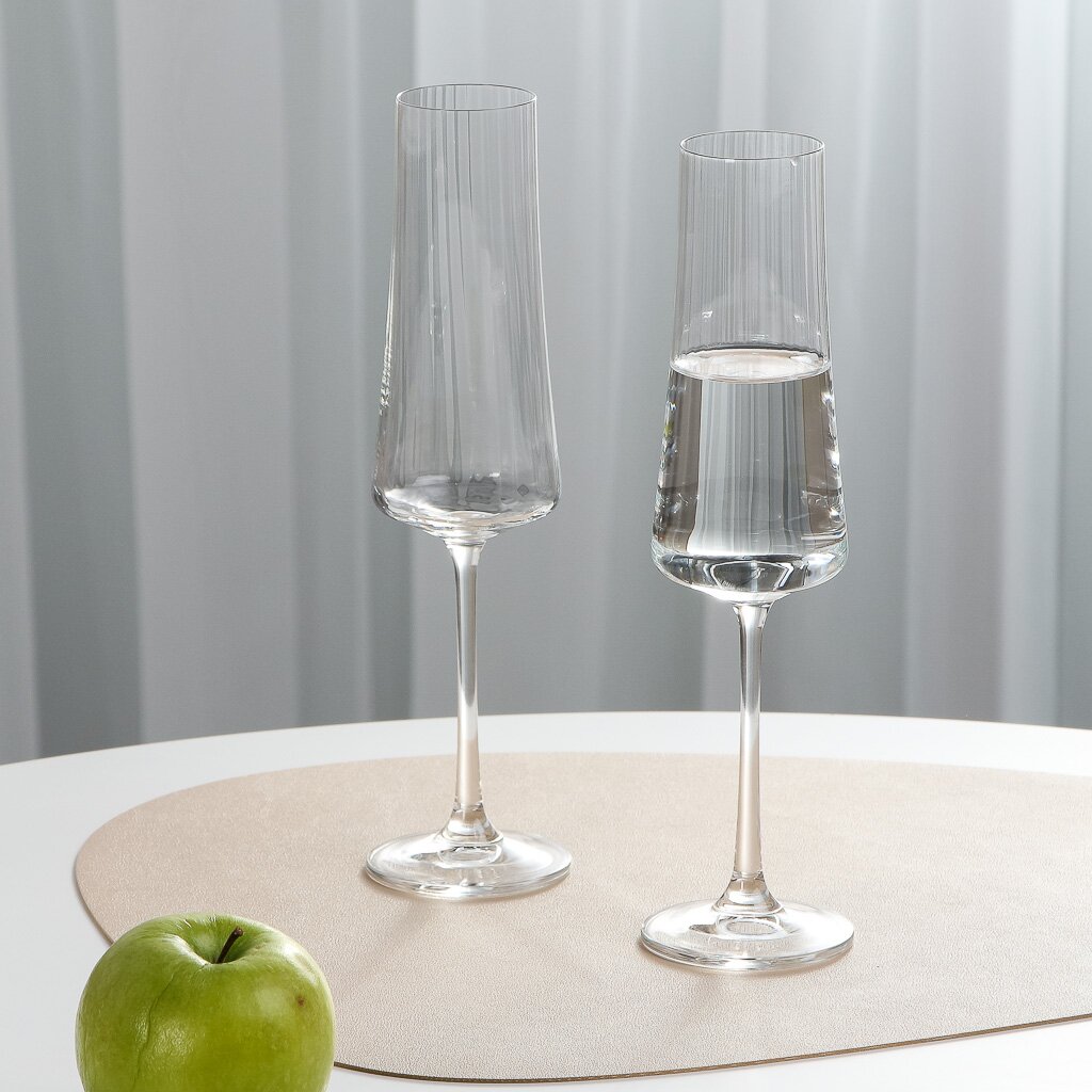 Объём бокала — 210 мл, форма тюльпан идеально подходит для подачи шампанского и игристых вин, раскрывая их букет.