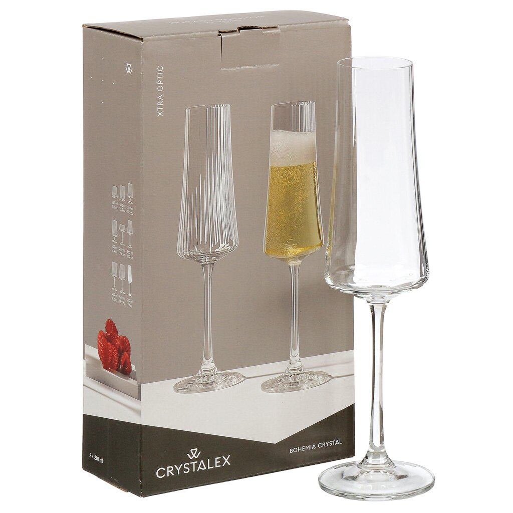 Бокалы для шампанского Bohemia Xtra optic 210 мл (2 шт) — элегантное решение для праздника и подарка. Прочное стекло, тюльпан, подходит для мытья в посудомоечной машине.