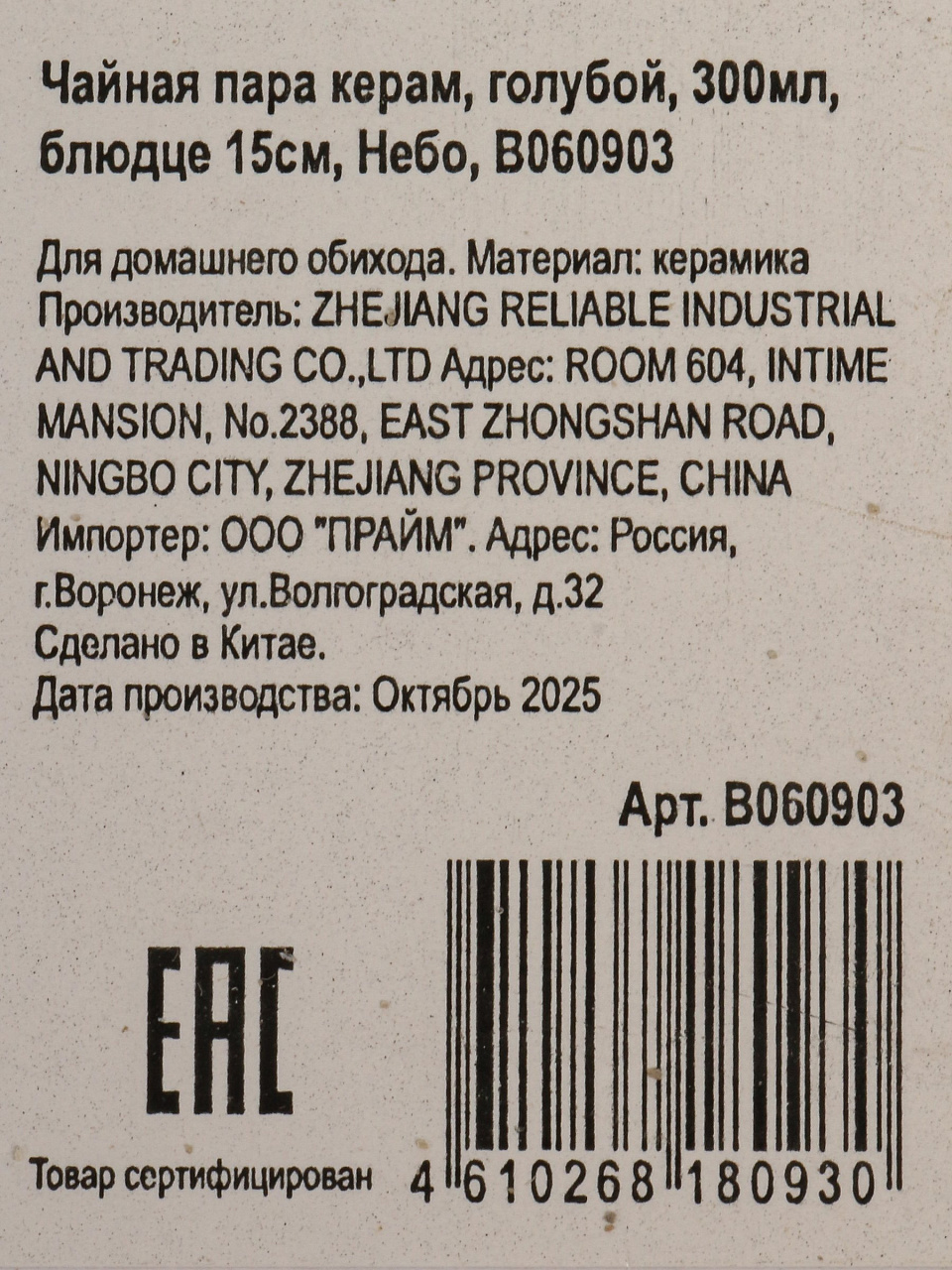 - Оптимальные параметры: чашка 300 мл и блюдце 15 см выполнены из прочной керамики, устойчивой к сколам и перепадам температур