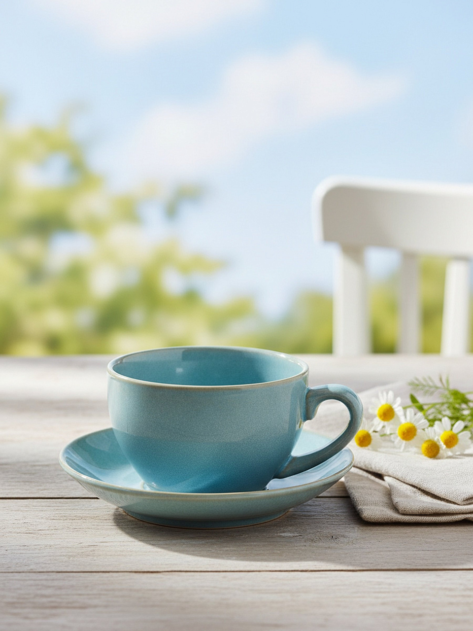 Трендовый голубой цвет, универсальный объём 300 мл и прочная керамика делают её отличным выбором для подарка, домашнего и дачного чаепития.