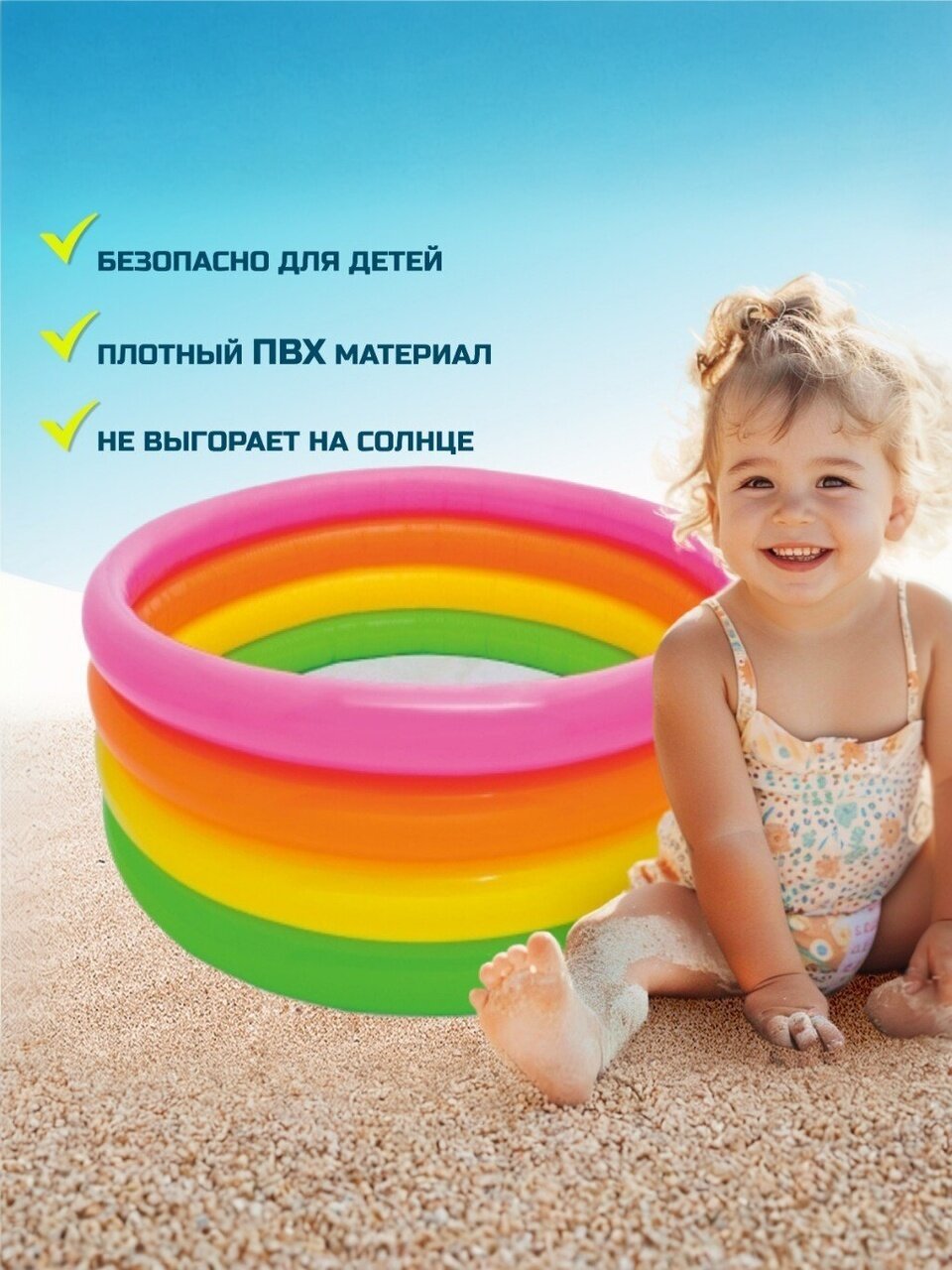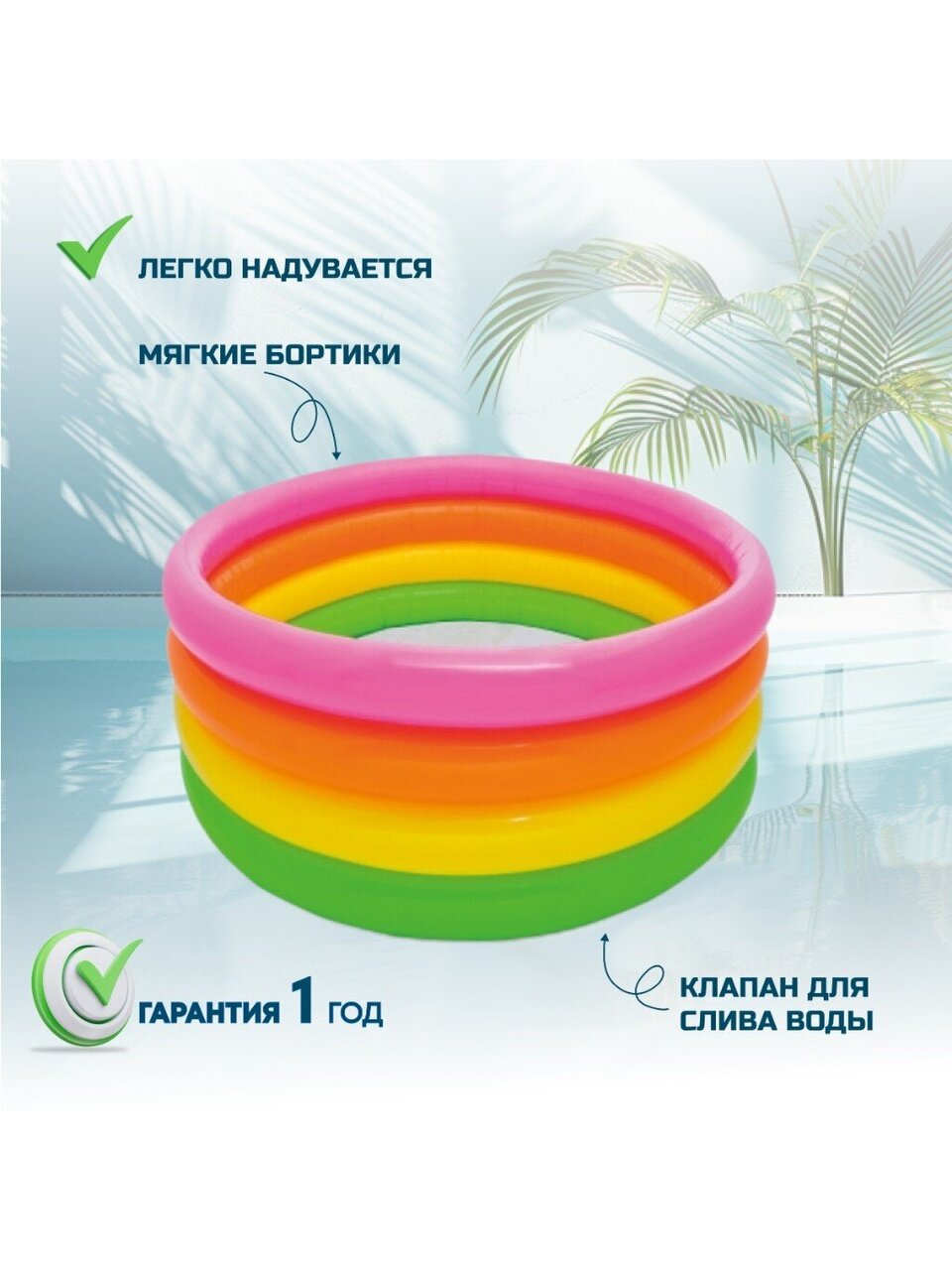 Подарите детям возможность насладиться летними днями в полной мере с детским бассейном для дачи. Это не только источник веселья, но и способ укрепления здоровья через активные игры на свежем воздухе. Радуга надувного бассейна Intex станет символом счастливого детства и незабываемых летних каникул!