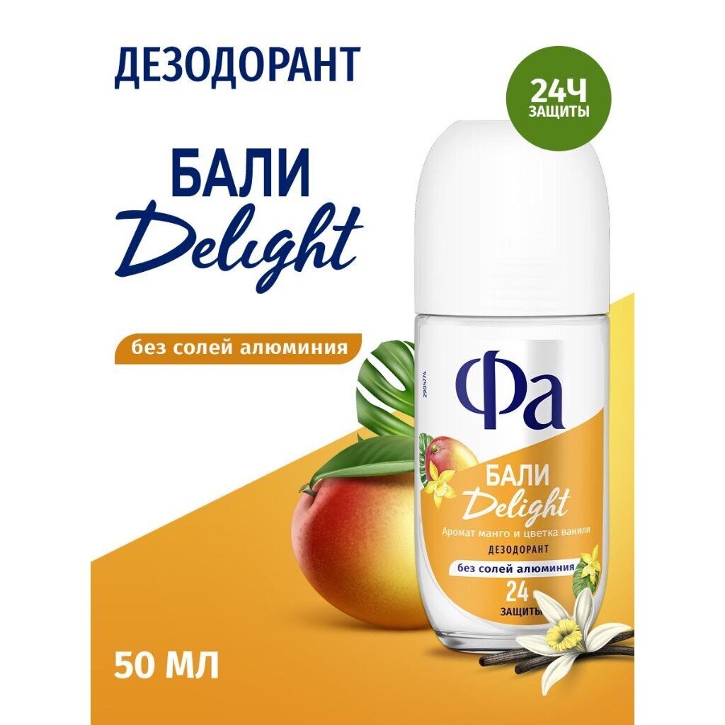 Дезодорант Фа Ритмы Острова Бали Поцелуй — свежий тропический аромат манго и цветка ванили, который подарит уверенность и комфорт на весь день. Формула без солей алюминия обеспечивает 24-часовую защиту, не блокируя естественные процессы кожи. Идеальный выбор для женщин, ценящих свежесть, заботу и длительный эффект.