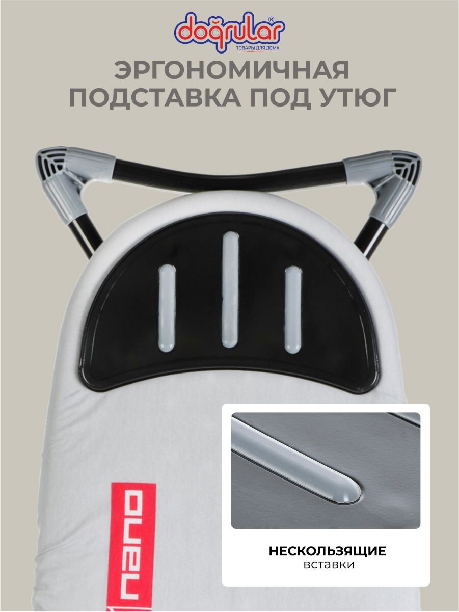 Представляем гладильную доску "Нано" от бренда Dogrular — сочетание функциональности и стиля для идеального ухода за одеждой. Эта гладильная доска станет незаменимым помощником в создании безупречного внешнего вида ваших вещей. Современный дизайн и практичные решения делают ее отличным выбором для любого дома.