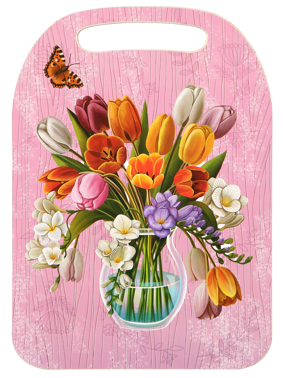Вы можете приобрести «Доска разделочная дерево, 29х21х0.6 см, с ручкой, розовая, прямоугольная, Цветы в вазе, К-288» и другие товары в нашем интернет-магазине в Таганроге по низким ценам и с бесплатным самовывозом.