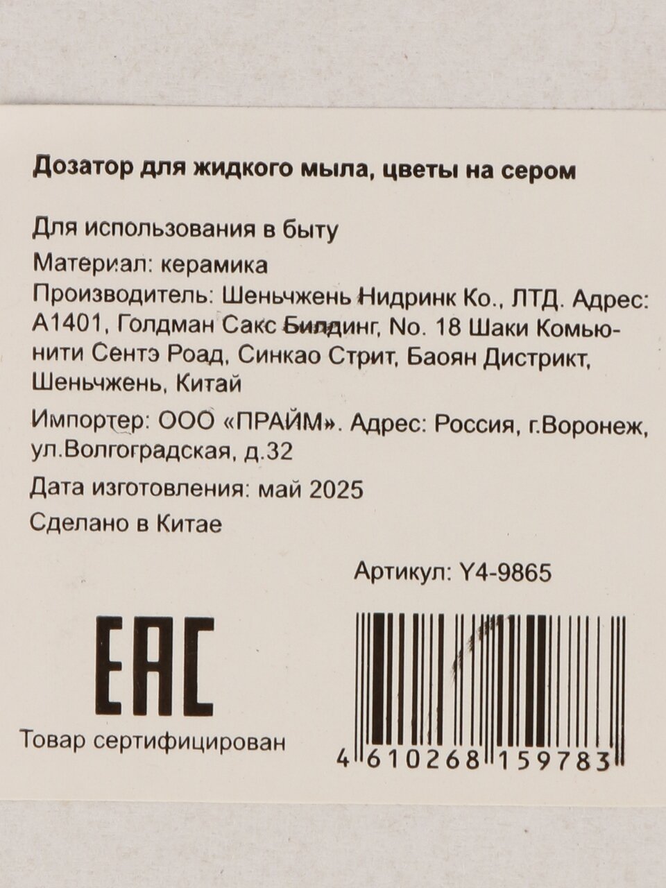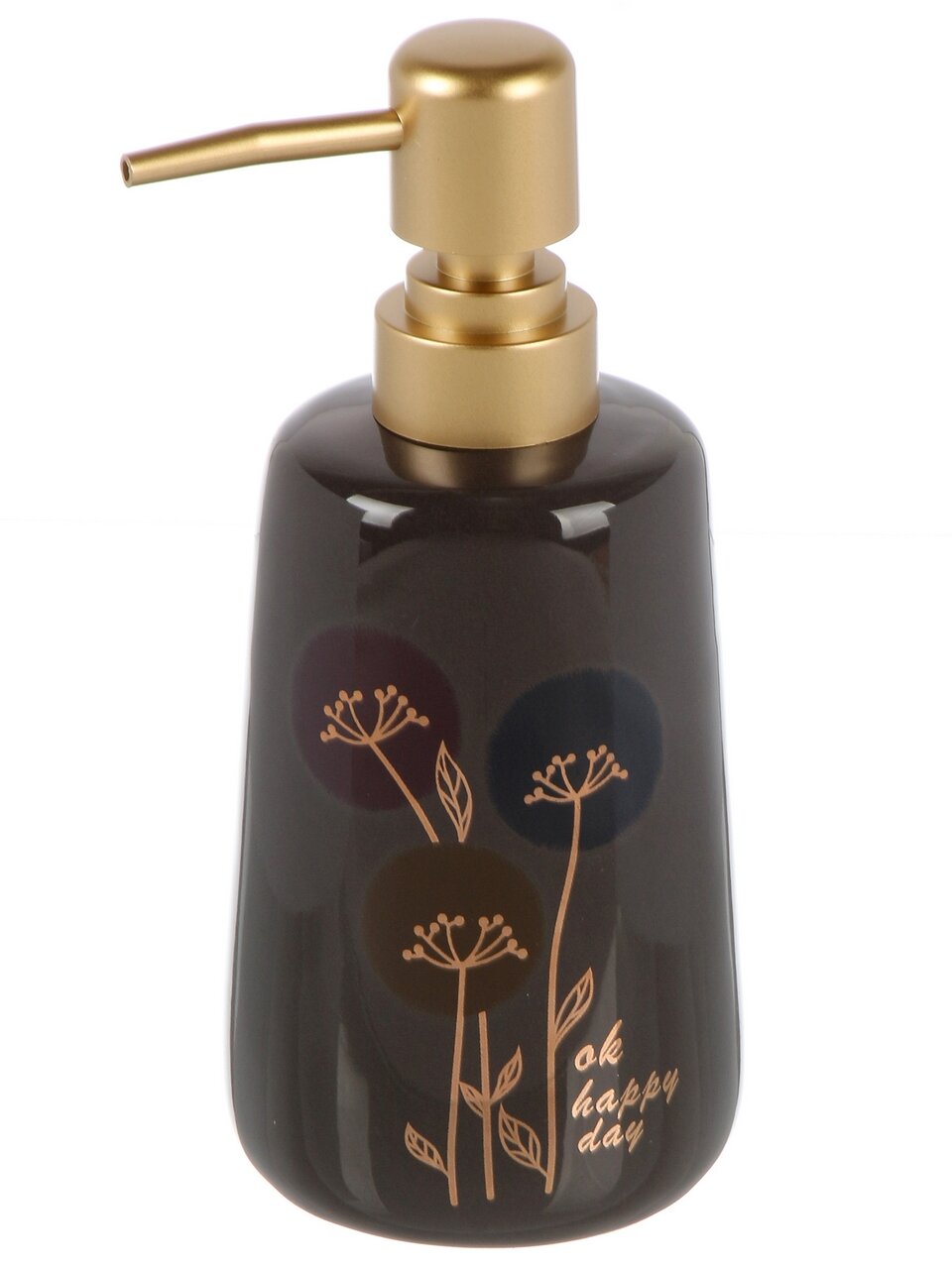 Дозатор для жидкого мыла, керамика, цветы на сером, Y4-9865