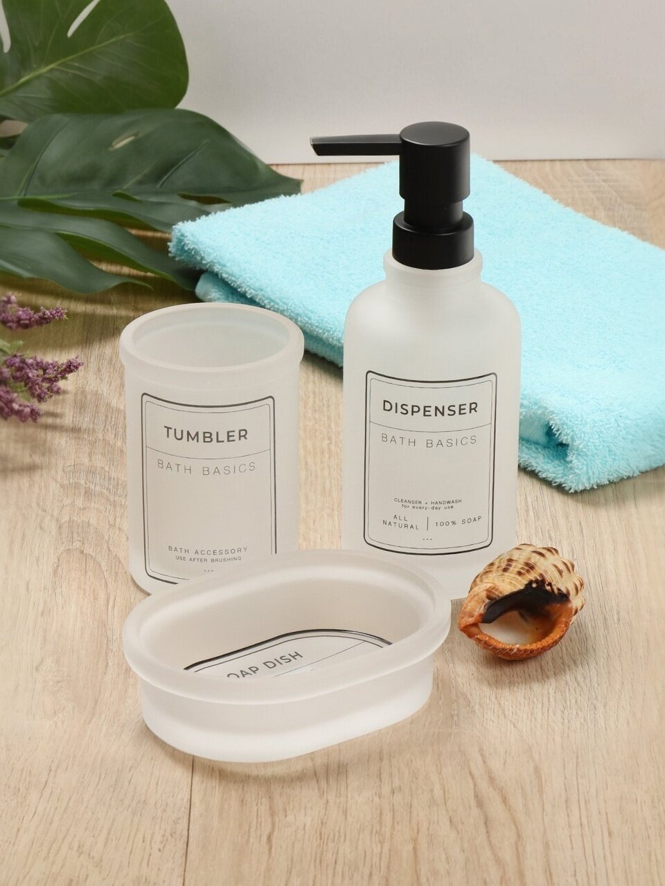 Дозатор для жидкого мыла можно приобрести вместе с другими аксессуарами для ванной комнаты, собрав единый по цвету и стилю комплект.