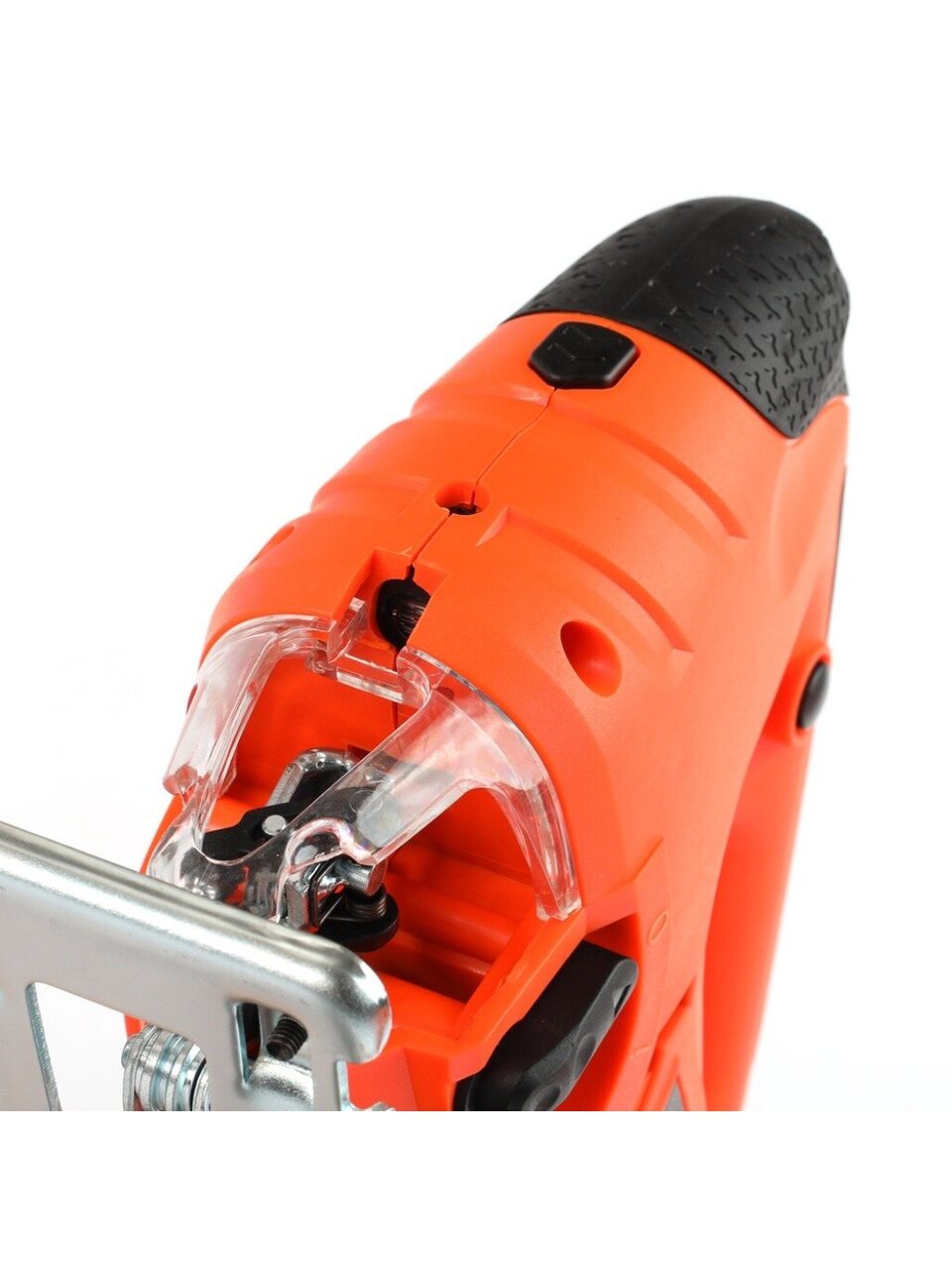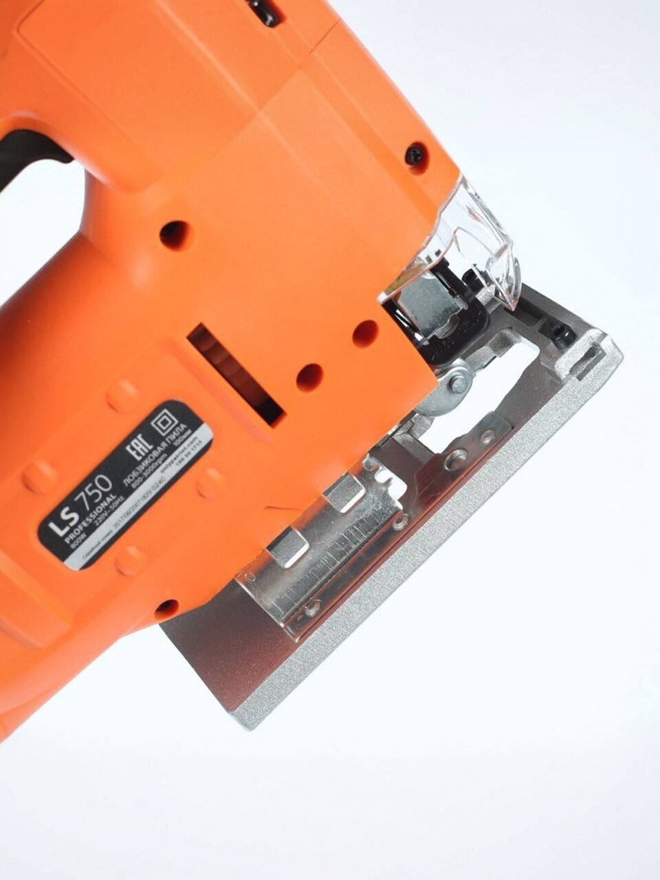 - Конструкция лобзика предусматривает наличие прозрачного защитного экрана, который обеспечивает хороший обзор рабочей зоны и повышает комфорт при работе.