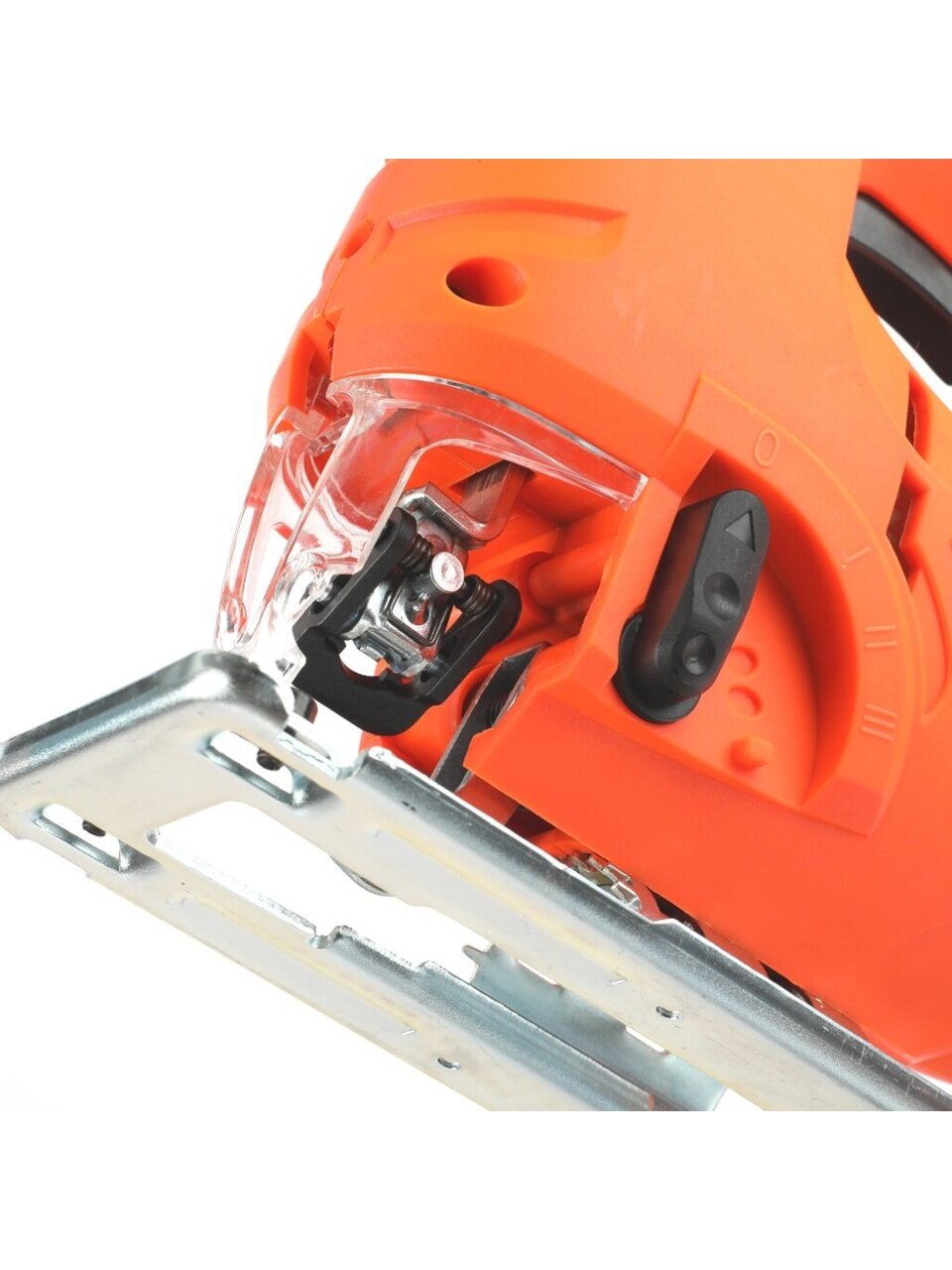 - Удобная регулировка скорости (6 положений) и маятникового хода (4 положения) позволяют адаптировать инструмент к различным материалам и типам пропилов.