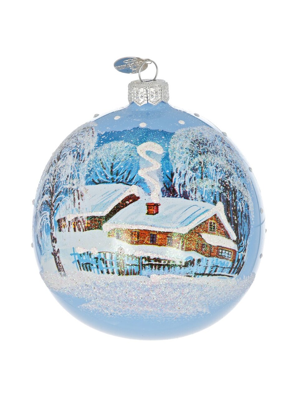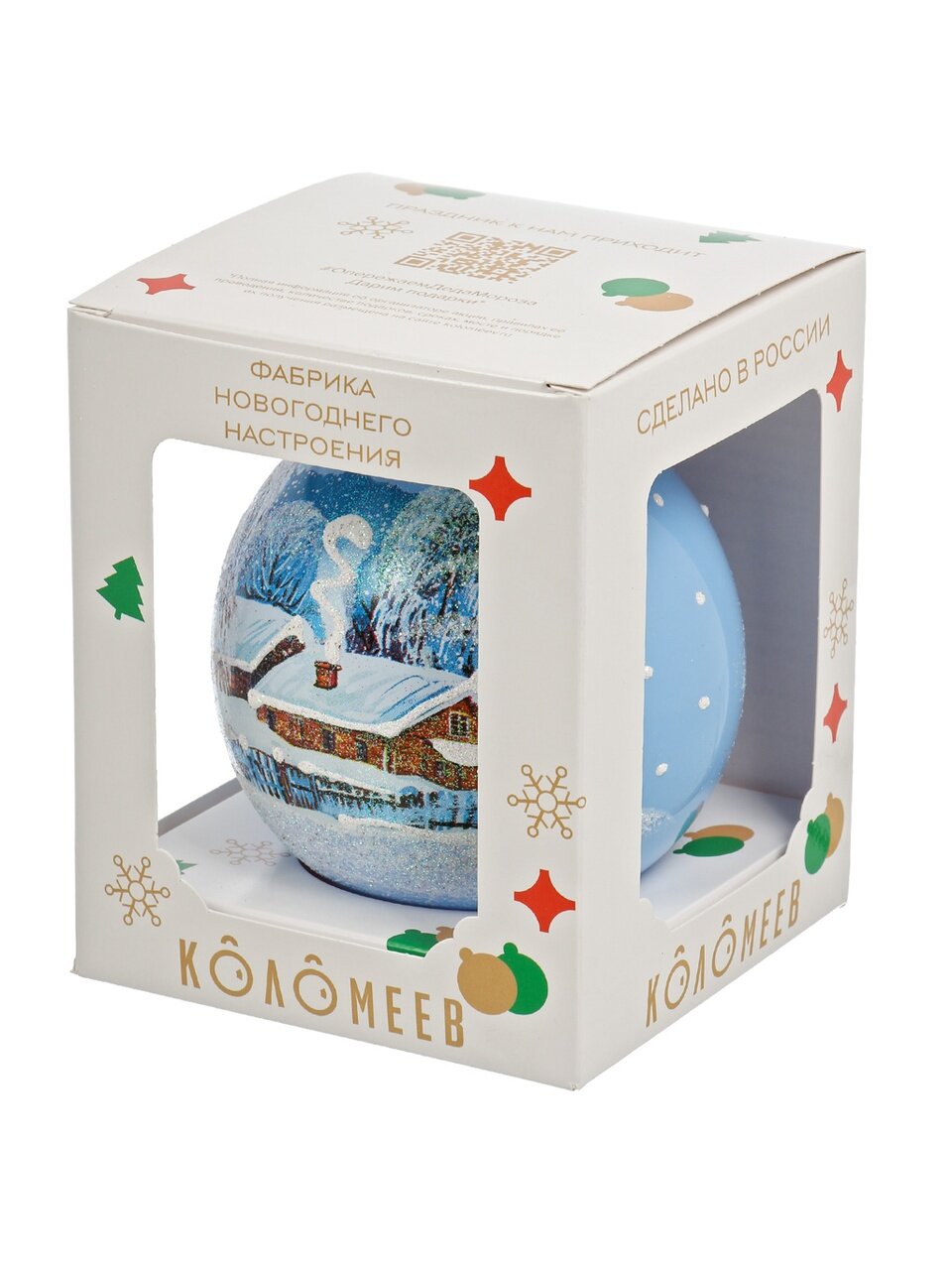 Елочный шар Волшебная зима 4, 10 см — стеклянное украшение с ручной росписью для стильного декора дома и подарка. Ощутите атмосферу праздника уже сегодня!