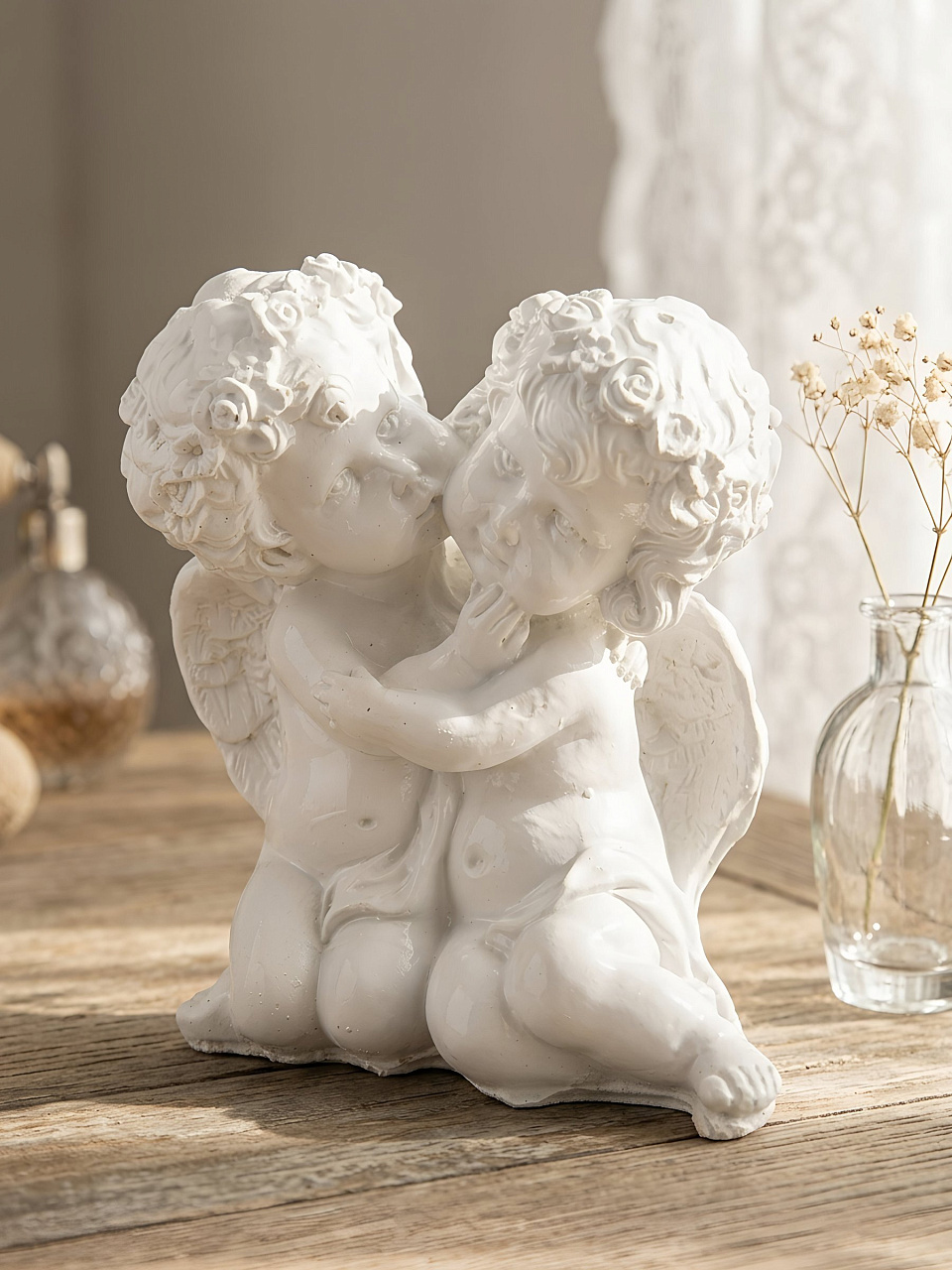 Многие спрашивают, подходит ли такая фигурка для подарка на годовщину? Да, символика влюбленных ангелов традиционно считается талисманом на счастье и удачу в отношениях. Если вы думаете, как использовать её в декоре, попробуйте скомбинировать статуэтку с фоторамками или свечами — это создаст завершенную композицию на комоде или журнальном столике.