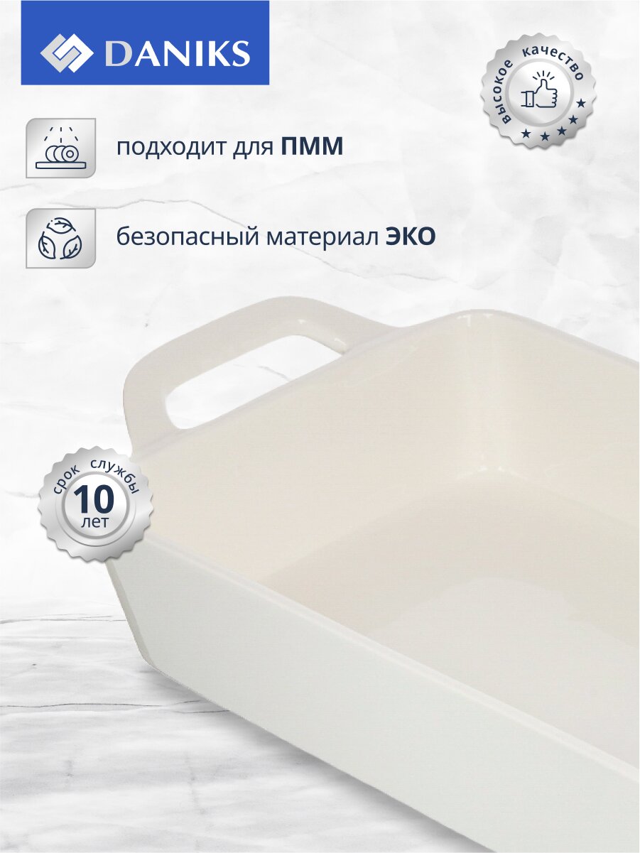 Форма для запекания из керамики Daniks Антарктида — выбор тех, кто ищет долговечную посуду для духовки без антипригарного покрытия. Керамика сохраняет тепло и обеспечивает равномерную прожарку, что особенно важно для приготовления мяса, рыбы, овощей и запеканок. Благодаря прямоугольной форме вы сможете удобно разместить большие порции, а белый цвет подчеркнет эстетику сервировки.