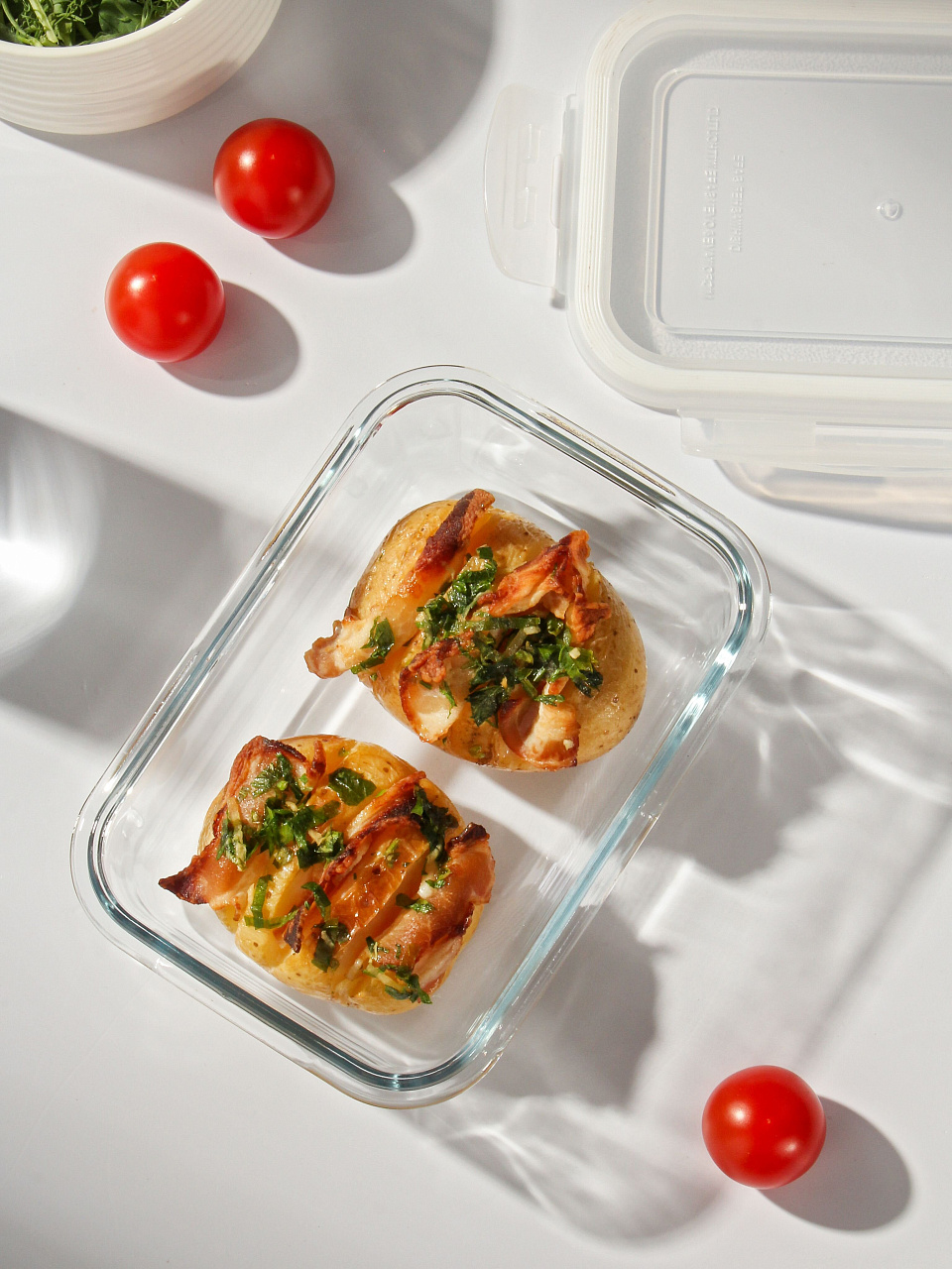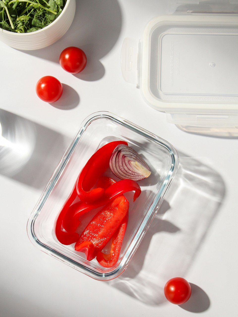 Стекло не впитывает запахи, легко отмывается, крышка сохраняет свежесть и аромат блюда, удобно брать с собой или хранить в холодильнике.
