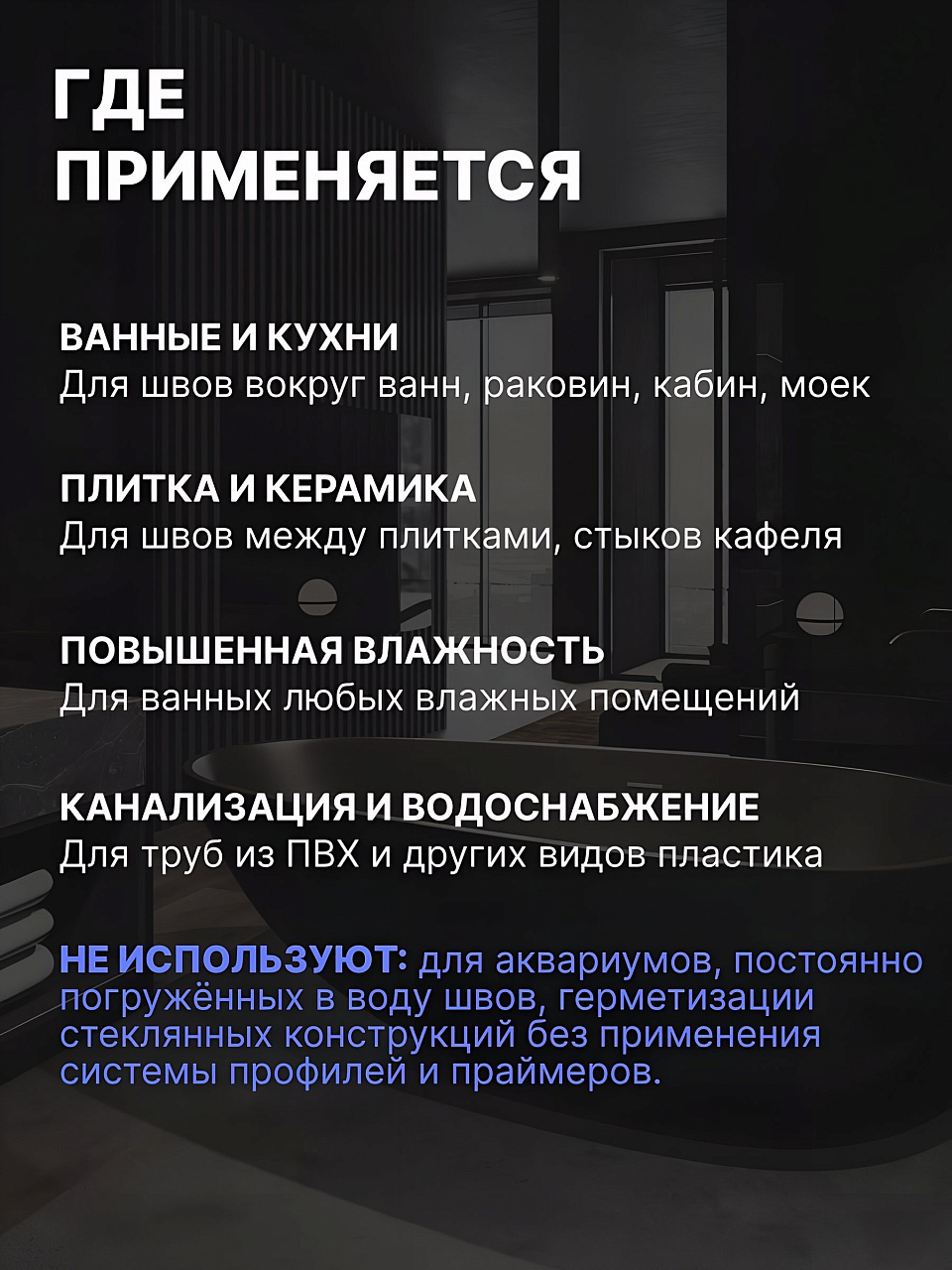- Герметик не предназначен для поверхностей, подвергающихся воздействию УФ-излучения сквозь стекло (окна), а также полимеров с высоким содержанием пластификаторов.