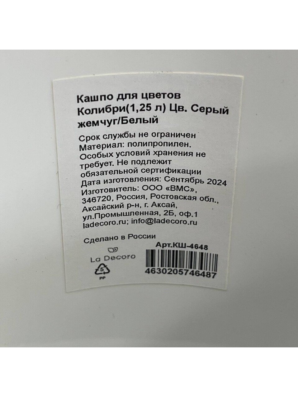 Ищете стильное и функциональное решение для вашего интерьера? Кашпо "Колибри" объемом 1.25 литра станет отличным выбором для создания уютной атмосферы. Универсальный дизайн в цвете серый жемчуг/белый идеально впишется в современный интерьер, а прочный пластик обеспечит долговечность и легкость в уходе.