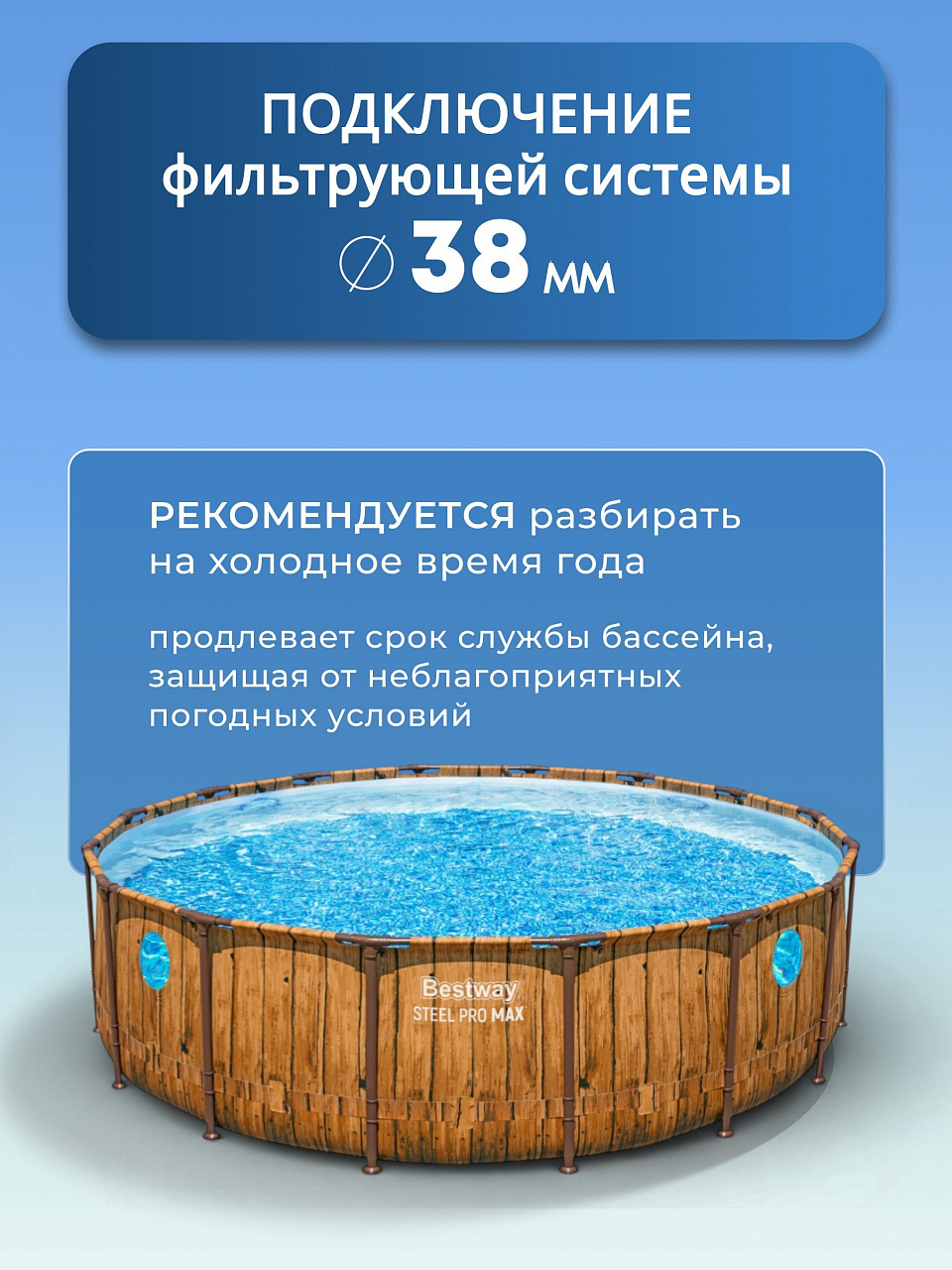 Бассейн каркасный Bestway, 488х122 см, Steel Pro Max, 56725, фильтр-насос, лестница, тент, 19480 л, ремкомплект - фото 1 от пользователя