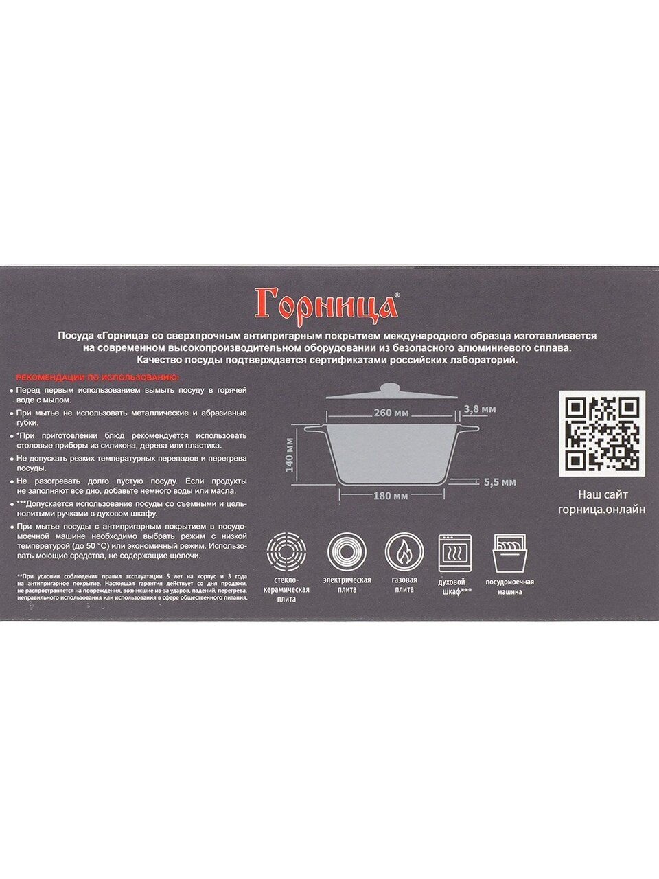 Кастрюля Горница 5 л с антипригарным гранитным покрытием и стеклянной крышкой: для индукционных плит, дома и дачи, гарантия 36 мес.