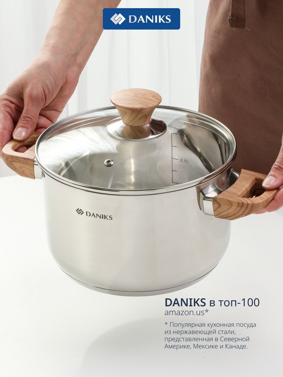 Кастрюля Daniks Осло 3.9 л из нержавеющей стали с крышкой из стекла — универсальное решение для индукционных плит, быстрая готовка без пригорания и легкий уход.