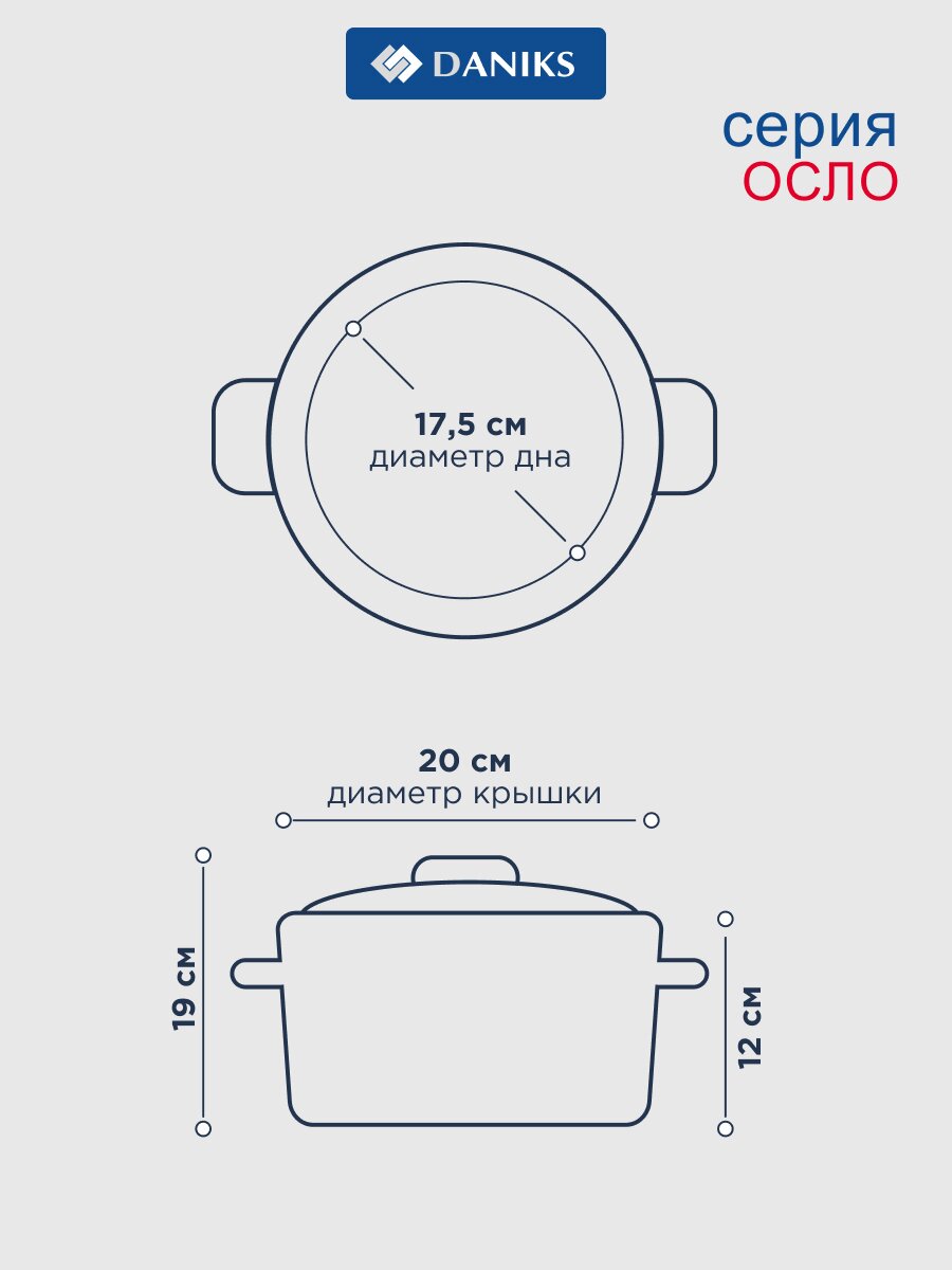Какой диаметр и объем у кастрюли Daniks Осло GS-01147-20CA?