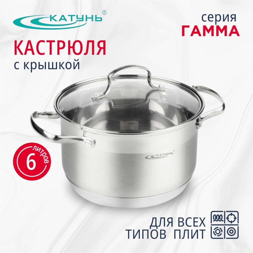 Кастрюля из нержавеющей стали 6 л Катунь Гамма: универсальная посуда для индукции и любых плит — оптимальный выбор для дома и дачи