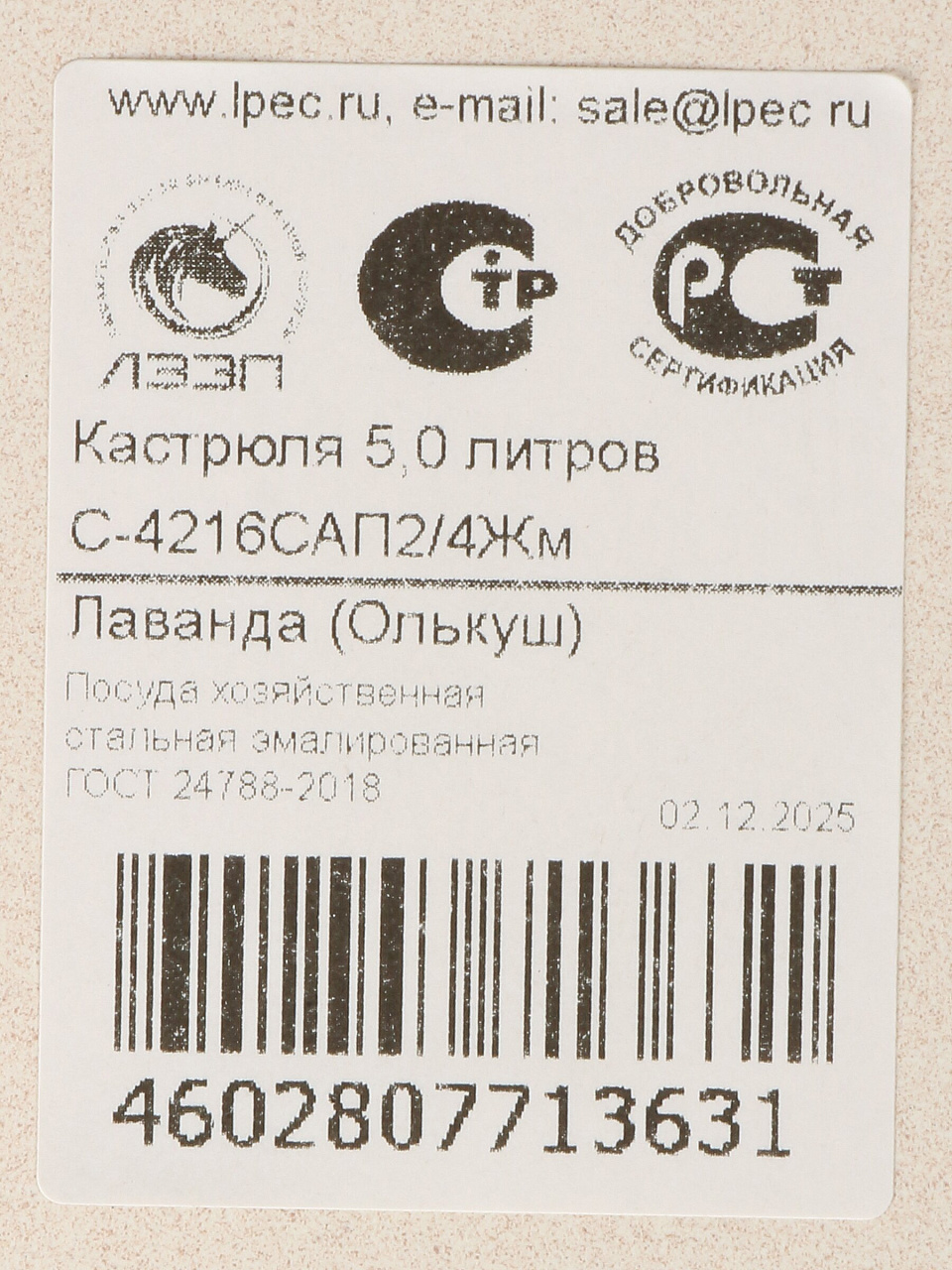 Вы можете приобрести «Кастрюля эмалированная сталь, 5 л, крышка стекло, полусфера, ЛЗЭП, Лаванда, С-4216САП2/4Жм, индукция» и другие товары в нашем интернет-магазине в Коврове по низким ценам и с бесплатным самовывозом.