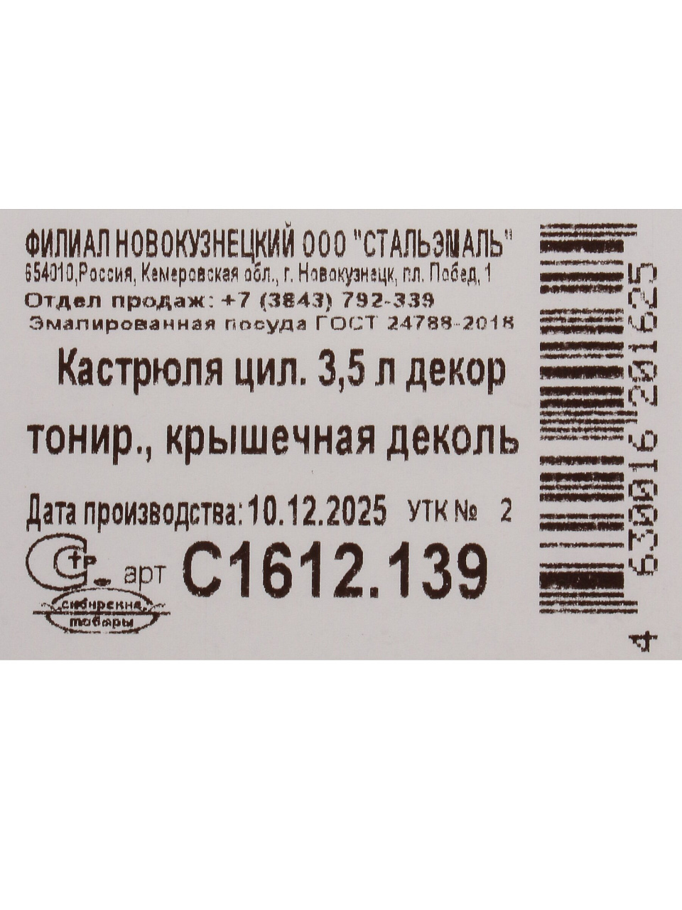 Вы можете приобрести «Кастрюля эмалированная сталь, 3.5 л, сталь с деколью, пластиковая кнопка, цилиндрическая, Сибирские товары, С1612.139» и другие товары в нашем интернет-магазине в Краснодаре по низким ценам и с бесплатным самовывозом.