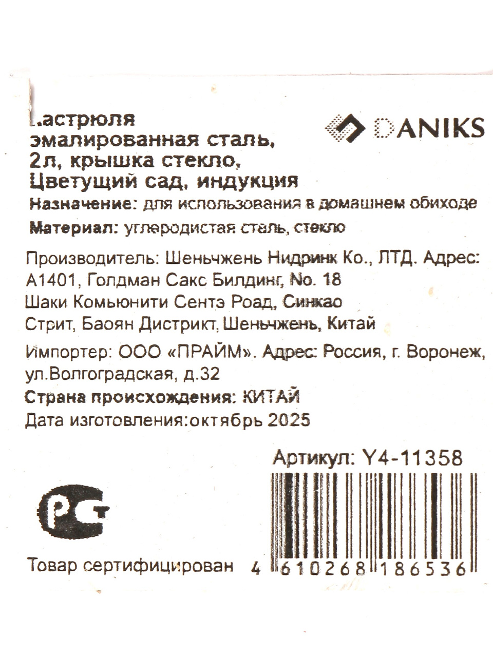 Вы можете приобрести «Кастрюля эмалированная сталь, 2 л, крышка стекло, Daniks, Цветущий сад, индукция» и другие товары в нашем интернет-магазине в Брянске по низким ценам и с бесплатным самовывозом.