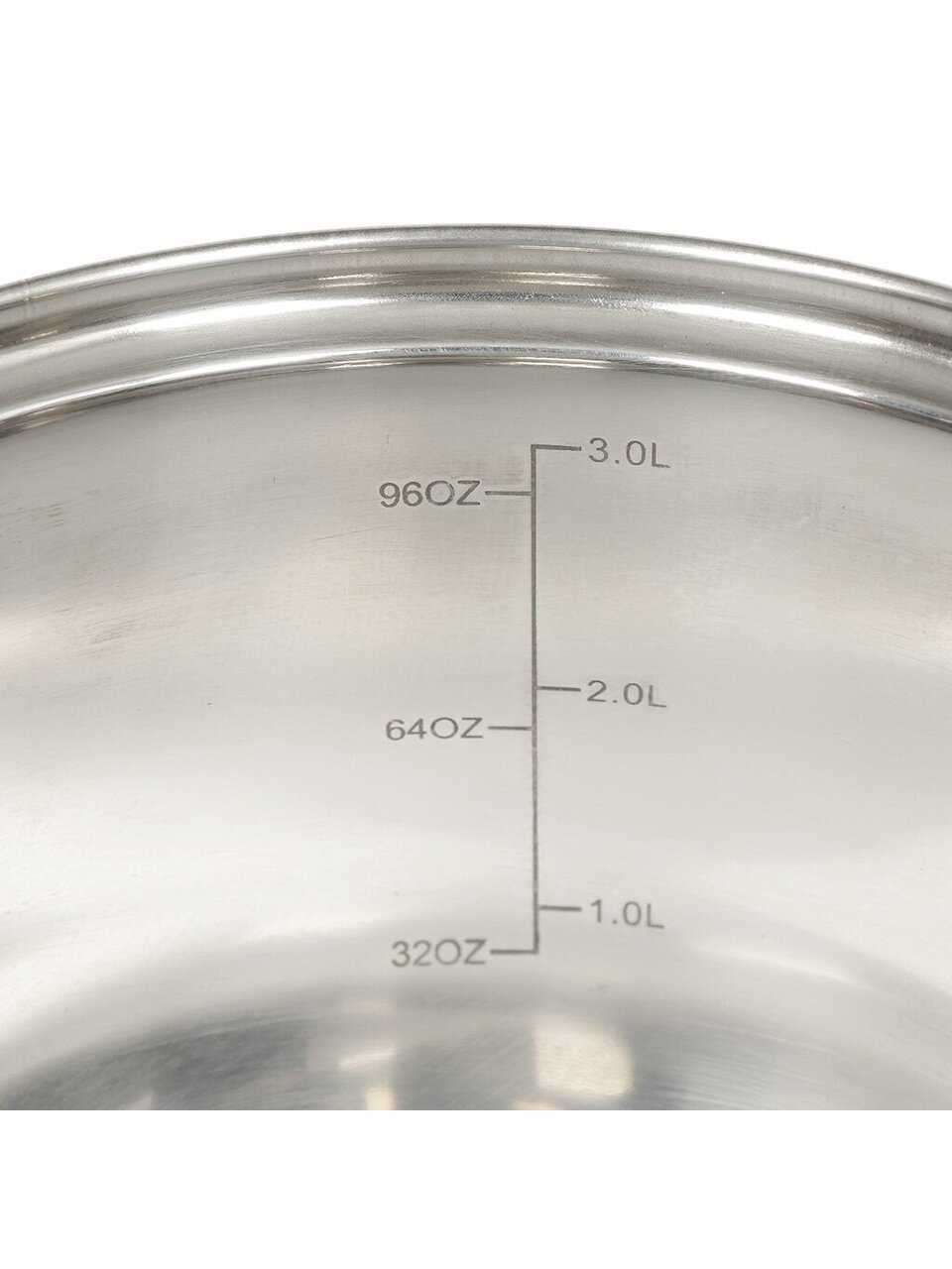 Эта кастрюля из нержавеющей стали — выбор для тех, кто ищет недорогую, но надёжную посуду для ежедневного использования. Благодаря многослойному дну (0.8 мм) тепло распределяется равномерно, что снижает риск пригорания даже без антипригарного покрытия. Как выбрать кастрюлю для газовой или электрической плиты? Эта модель совместима с большинством плит, кроме индукционных, и легко помещается в стандартную посудомоечную машину.