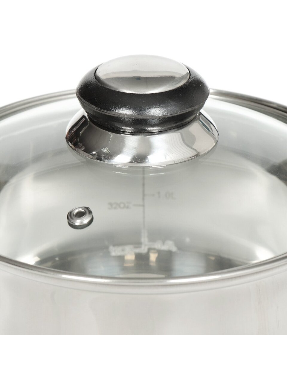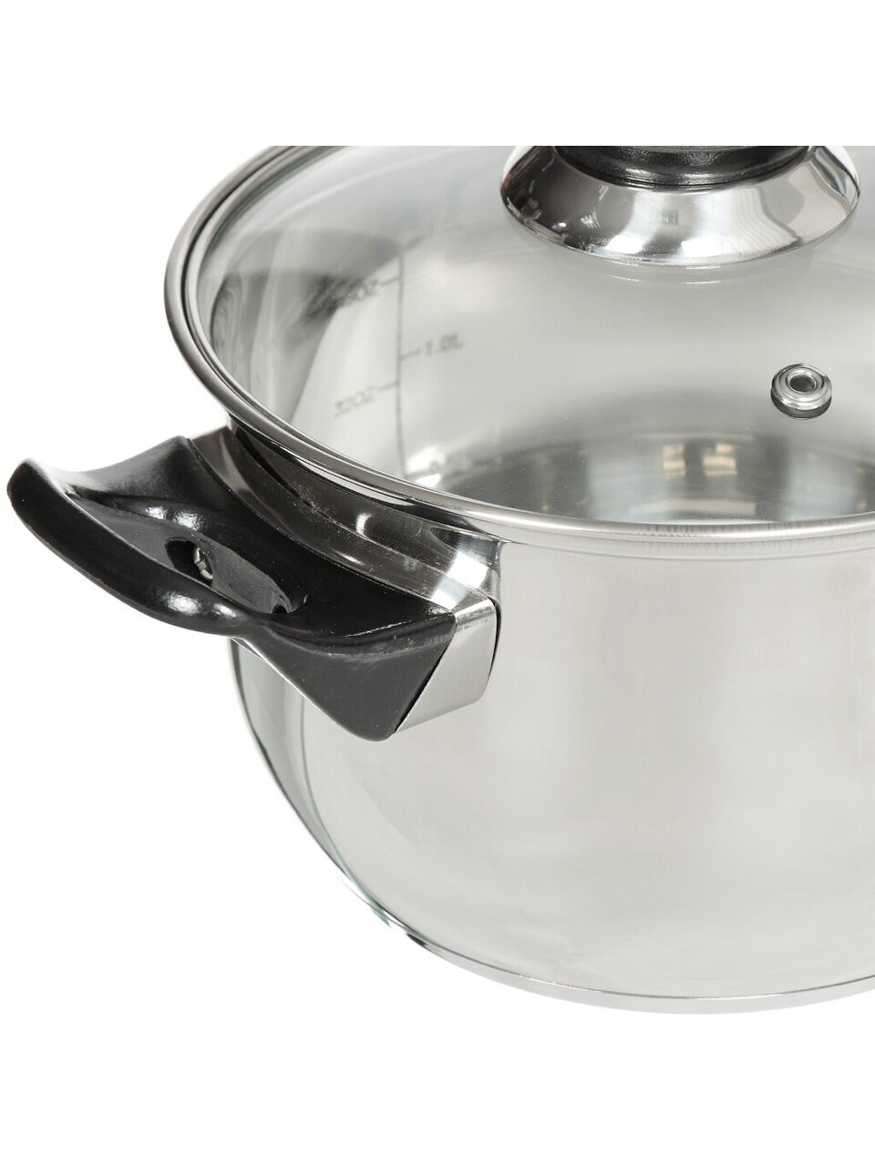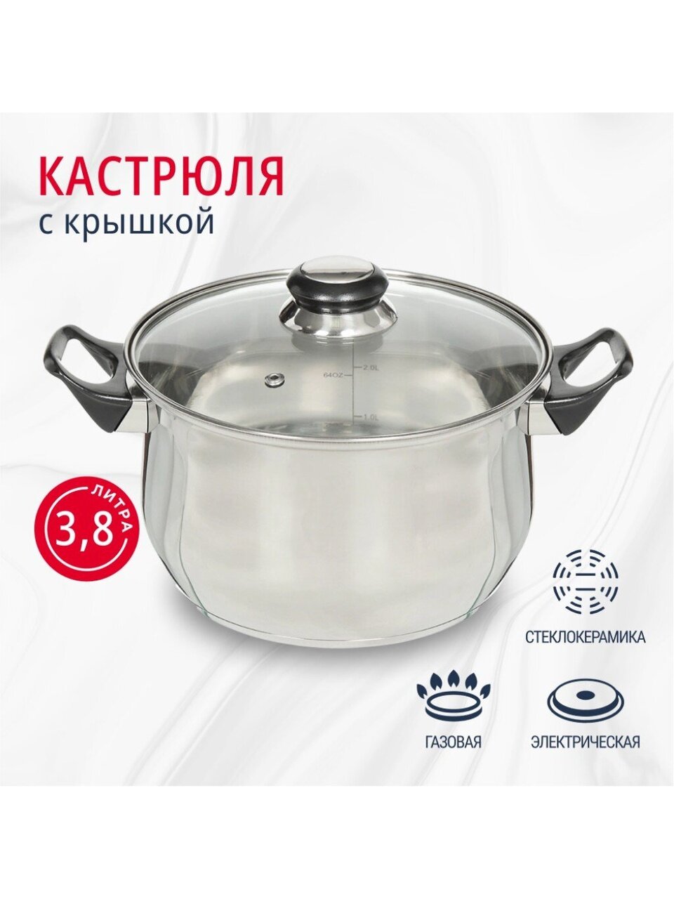 Кастрюля из нержавеющей стали 3.8 л с мерной шкалой и стеклянной крышкой — надёжное решение для ежедневной готовки дома и на даче. Лёгкая, вместительная, по выгодной цене.