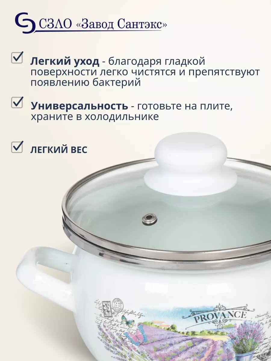 Кастрюля эмалированная Сантэкс Лаванда 1.5 л: идеальный выбор для индукции, быстрой готовки и стильной сервировки — выгодно для дома и дачи.