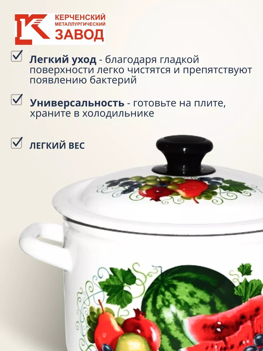 Кастрюля эмалированная 9 л Керченский завод: оптимальный выбор для больших семей и дачи, прочная сталь, долговечность до 24 месяцев гарантии.