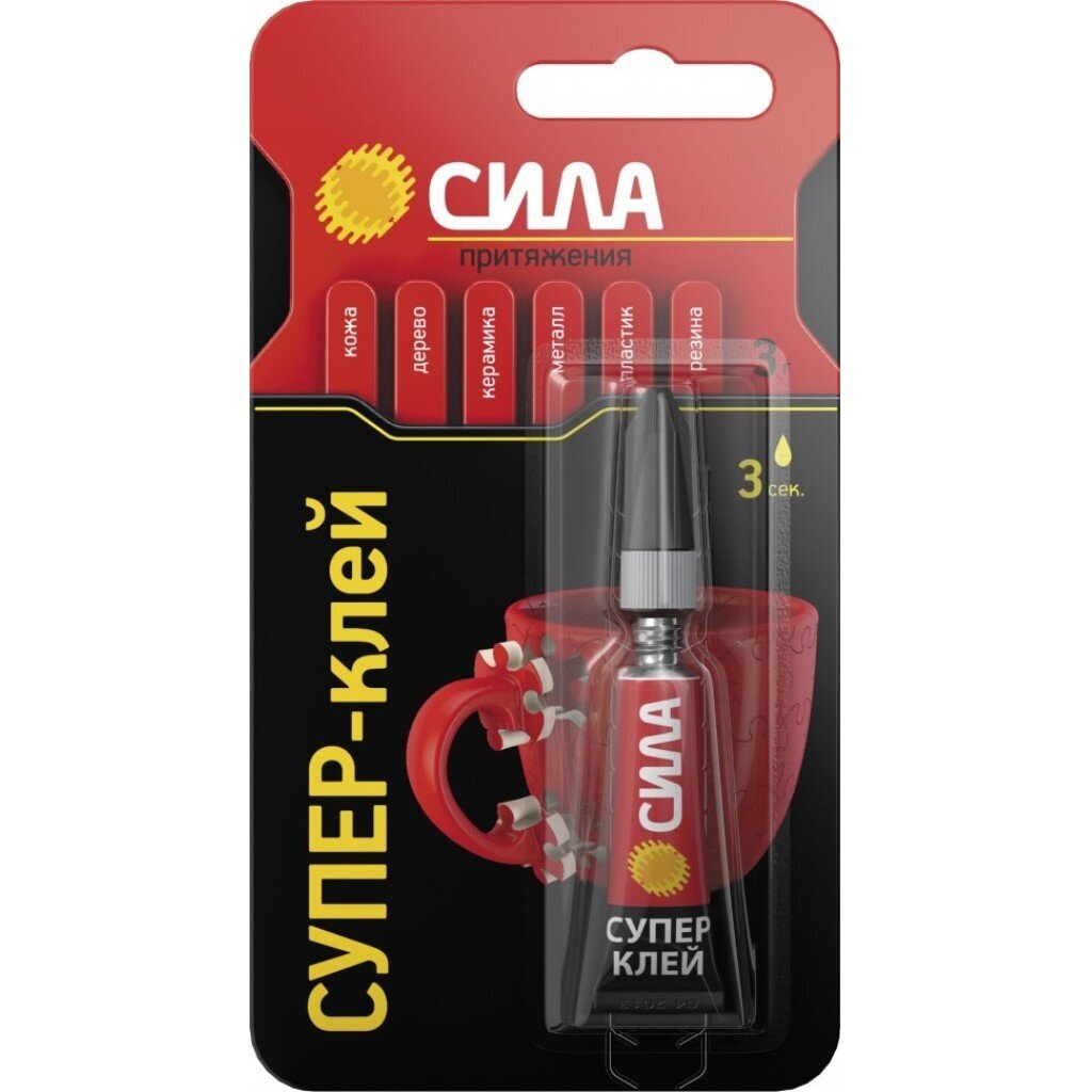 Супер клей СИЛА идеально подходит для быстрого и эффективного ремонта различных предметов. Состав накрепко схватывает дерево, резину, керамику, фарфор и пластик, при этом супер клеи экономично расходуются и высыхают за несколько секунд.