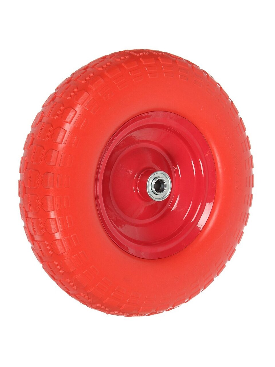 Бескамерная конструкция облегчает обслуживание и гарантирует отсутствие проколов, что особенно актуально при работе на сложном рельефе участка или стройплощадки. Прочный подшипник обеспечивает плавный ход и легкость транспортировки грузов. Благодаря несимметричной ступице, монтаж колеса не вызывает затруднений, а втулка диаметром 16 мм подходит для стандартных осей, что экономит время при установке.