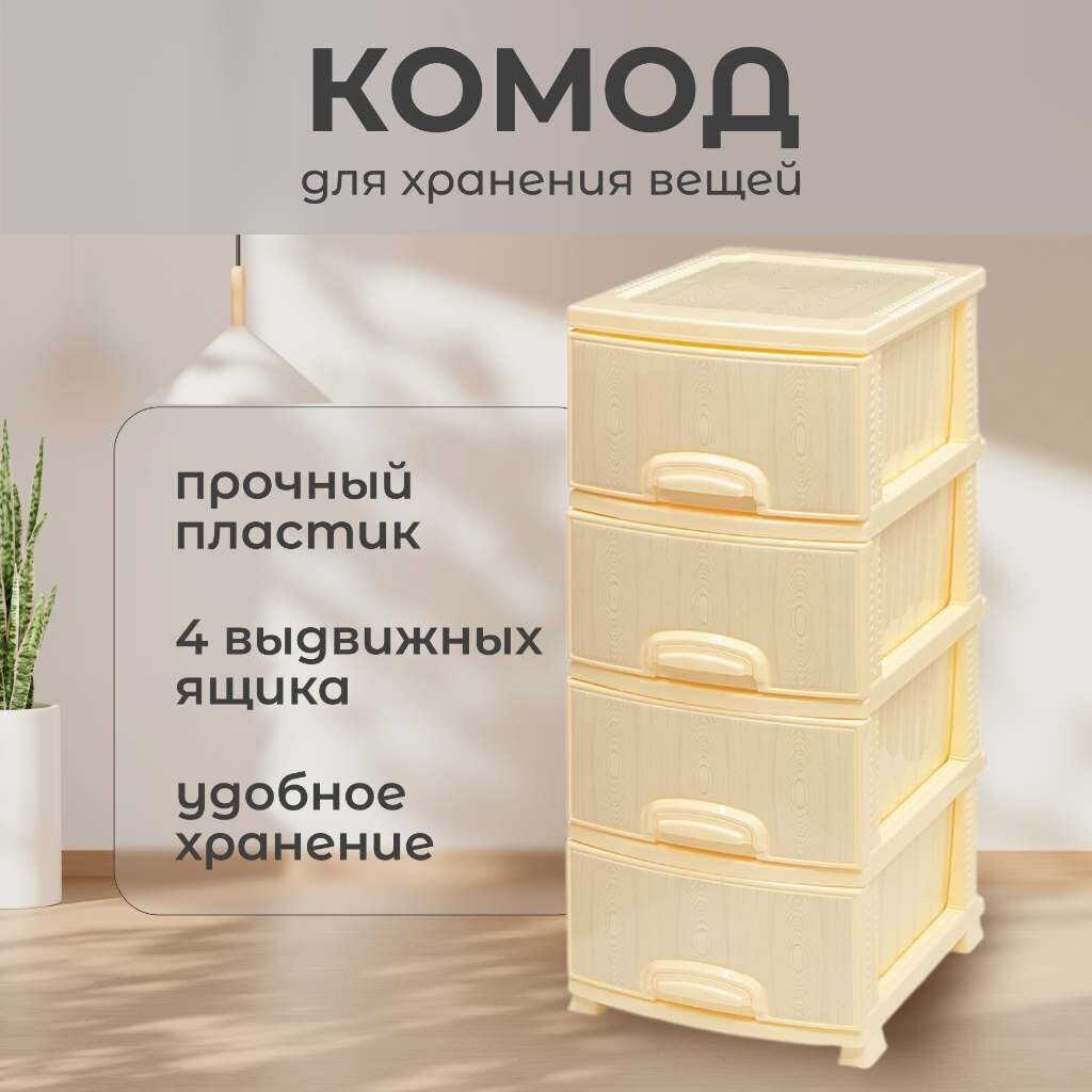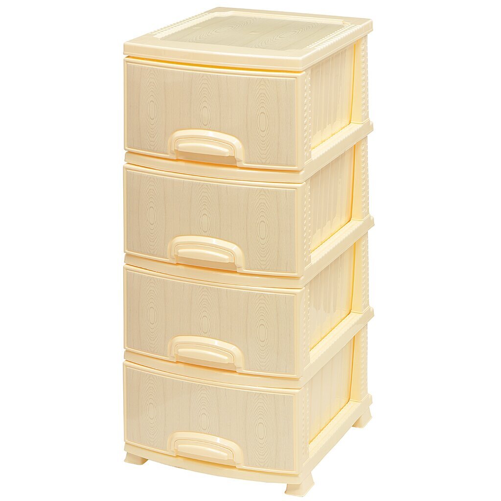 Комод 4 ящика, Белое дерево, 38х48х93 см, слоновая кость, РП-421, Росспласт