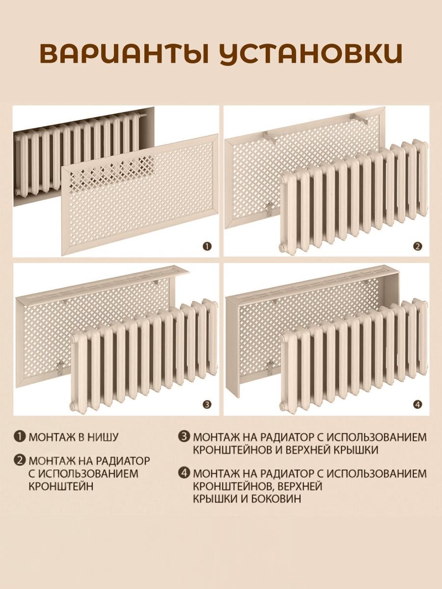 Экран для радиатора – это не просто элемент декора, это функциональный и практичный аксессуар, который способен преобразить ваш интерьер и сделать его более комфортным и уютным. Он так же поможет защитить от случайных ожогов и травм, а это особенно актуально для семей с маленькими детьми и домашними животными.