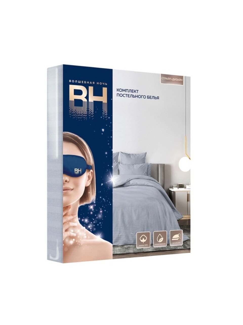 Премиальное постельное белье 2-спальное Волшебная ночь Gray Cloud: 100% хлопок страйп-ранфорс, подарочная упаковка, идеальный выбор для уюта и подарка.