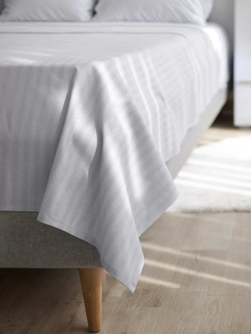 - Эффект премиум-отеля: страйп-ранфорс Gray Cloud с шелковистым блеском и прочностью