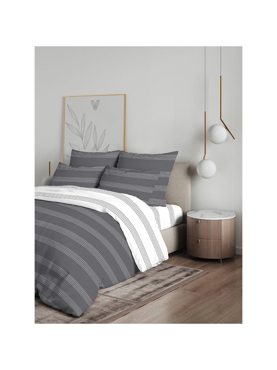 - Универсальные размеры: простыня 200×216 см, 2 наволочки 50×70 см, пододеяльник 175×215 см — подойдут для большинства стандартных кроватей