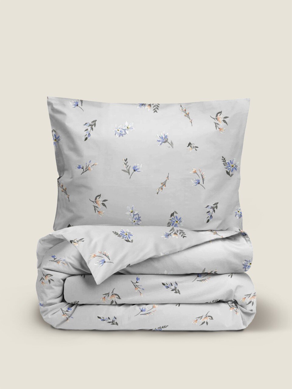 Комплект состоит из 3 предметов: пододеяльник 200х215 см, две наволочки 50х70 см, выполнен из натурального хлопка (поплин), без простыни.