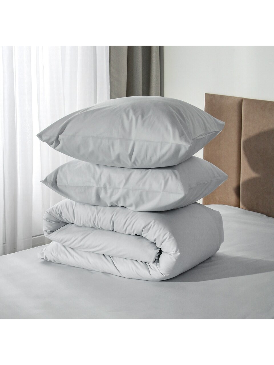 В комплекте: простыня 215х240 см, пододеяльник 205х215 см, две наволочки 70х70 см. Подходит для евро-кроватей без простыни на резинке.