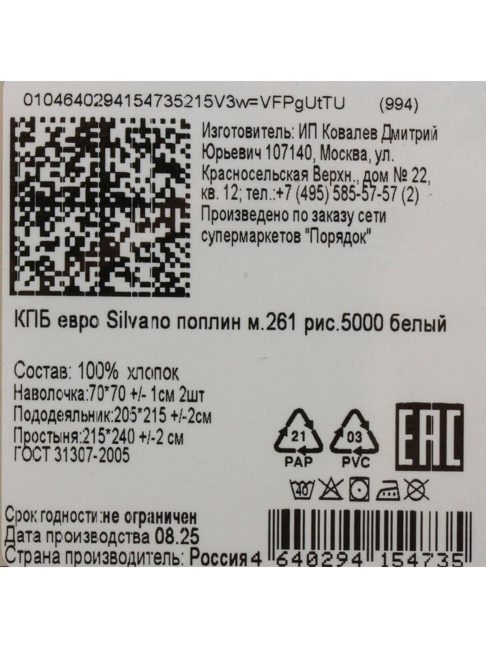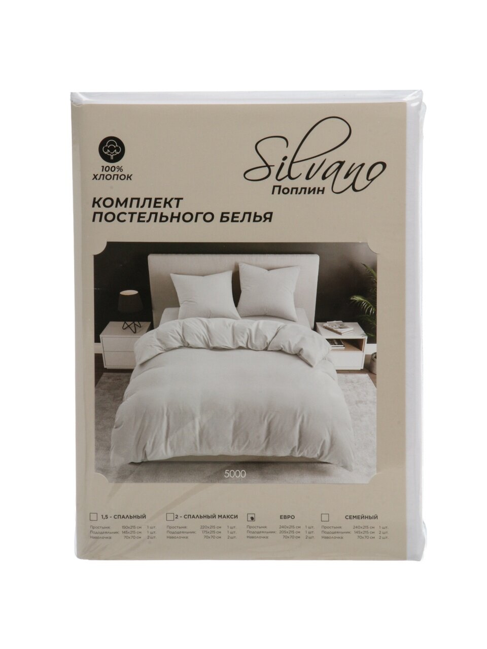 Постельное белье евро Silvano 5000, белый: премиальный поплин, 100% хлопок, 4 предмета — идеальный выбор для комфортного сна и стильного подарка.