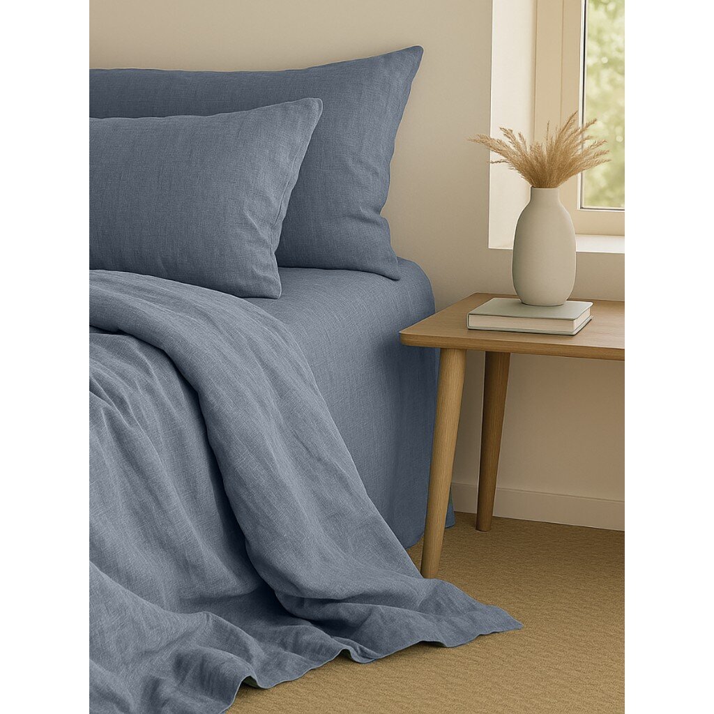 Постельное белье 2-спальное, простыня 240х260 см, 2 наволочки 50х70 см, пододеяльник 180х220 см, Silvano, вареный хлопок, Синий