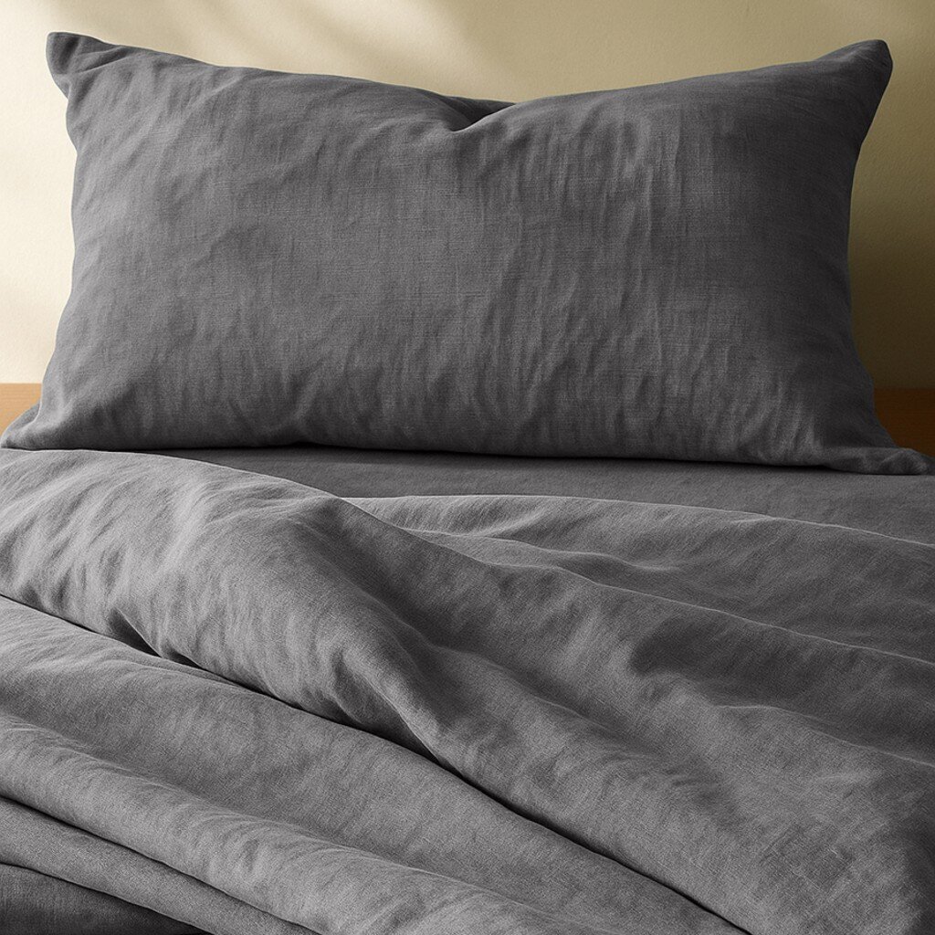 Постельное белье евро Silvano из варёного хлопка: премиальный комфорт, трендовый графит, размеры для просторной кровати — уют и стиль без переплат.