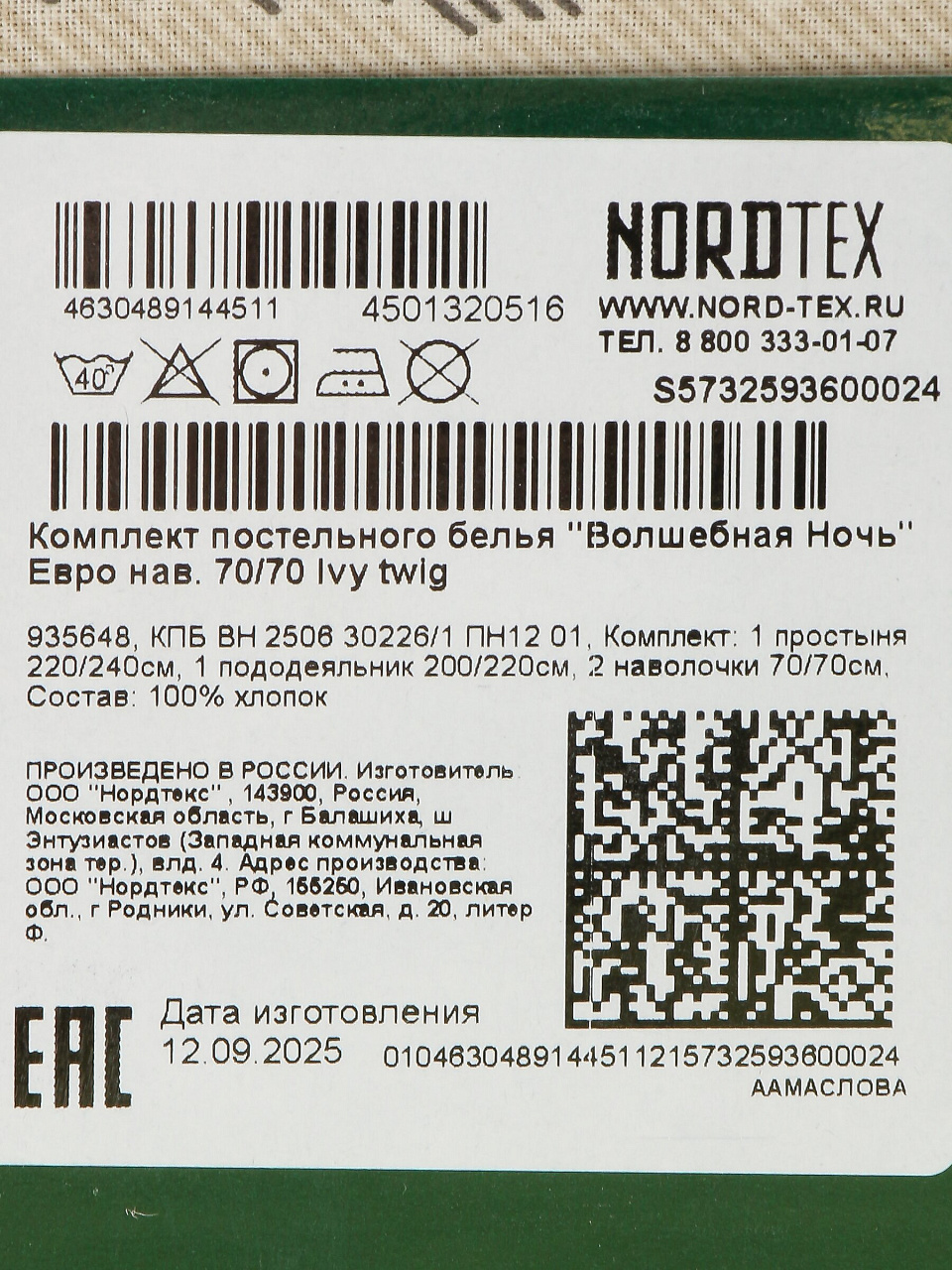 Постельное белье евро Волшебная ночь Ivy twig из перкаля: комфортный сон, стильный дизайн, премиальный хлопок, идеальный подарок — купить недорого с подарочной упаковкой.