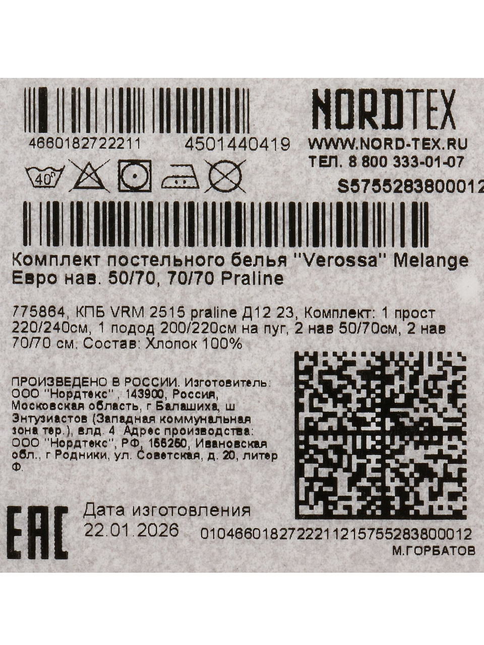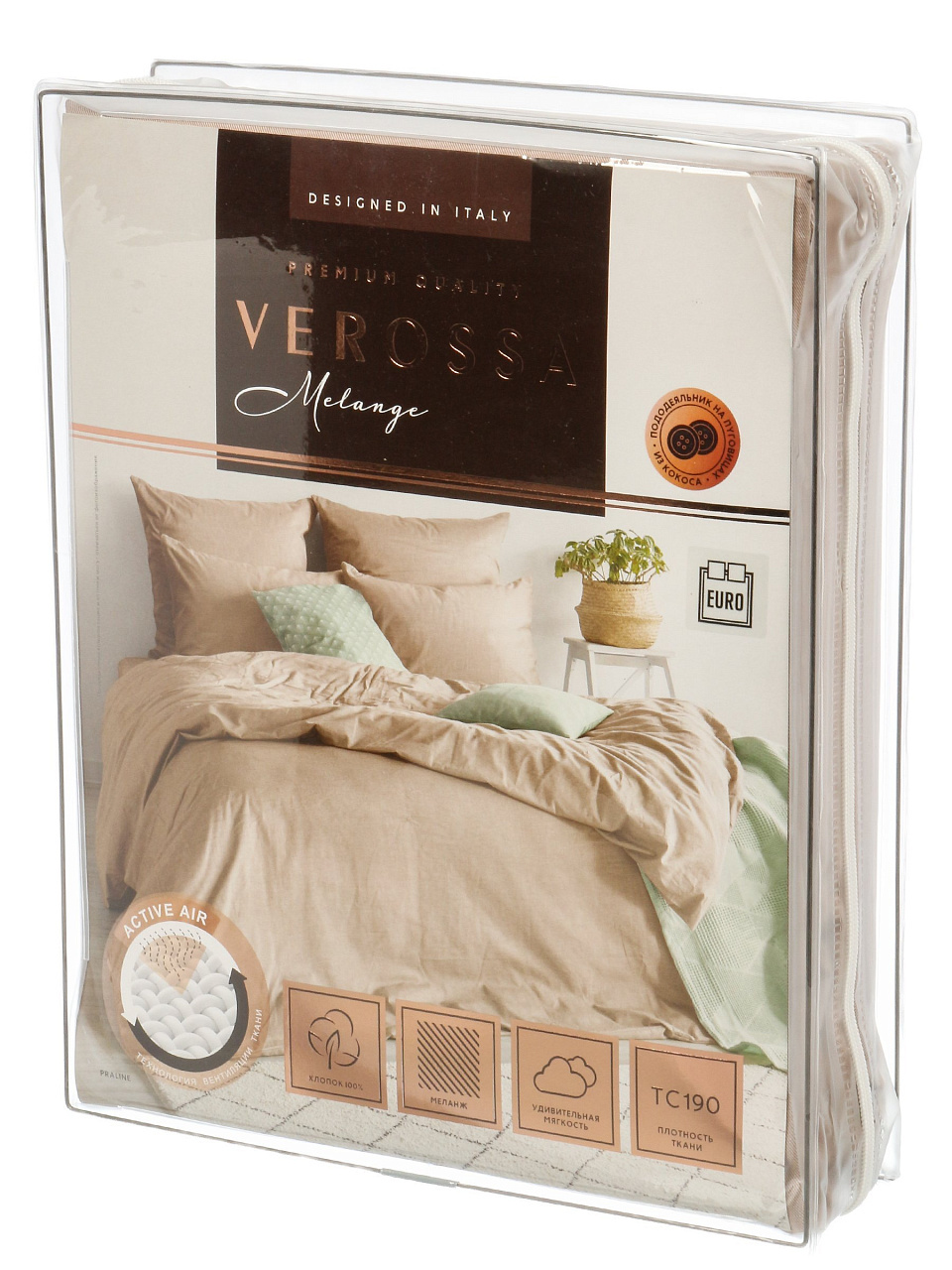 Постельное белье евро Verossa Praline из сатина: премиум-комфорт, 6 предметов, подарочная упаковка — идеальный выбор для стильного интерьера и крепкого сна.