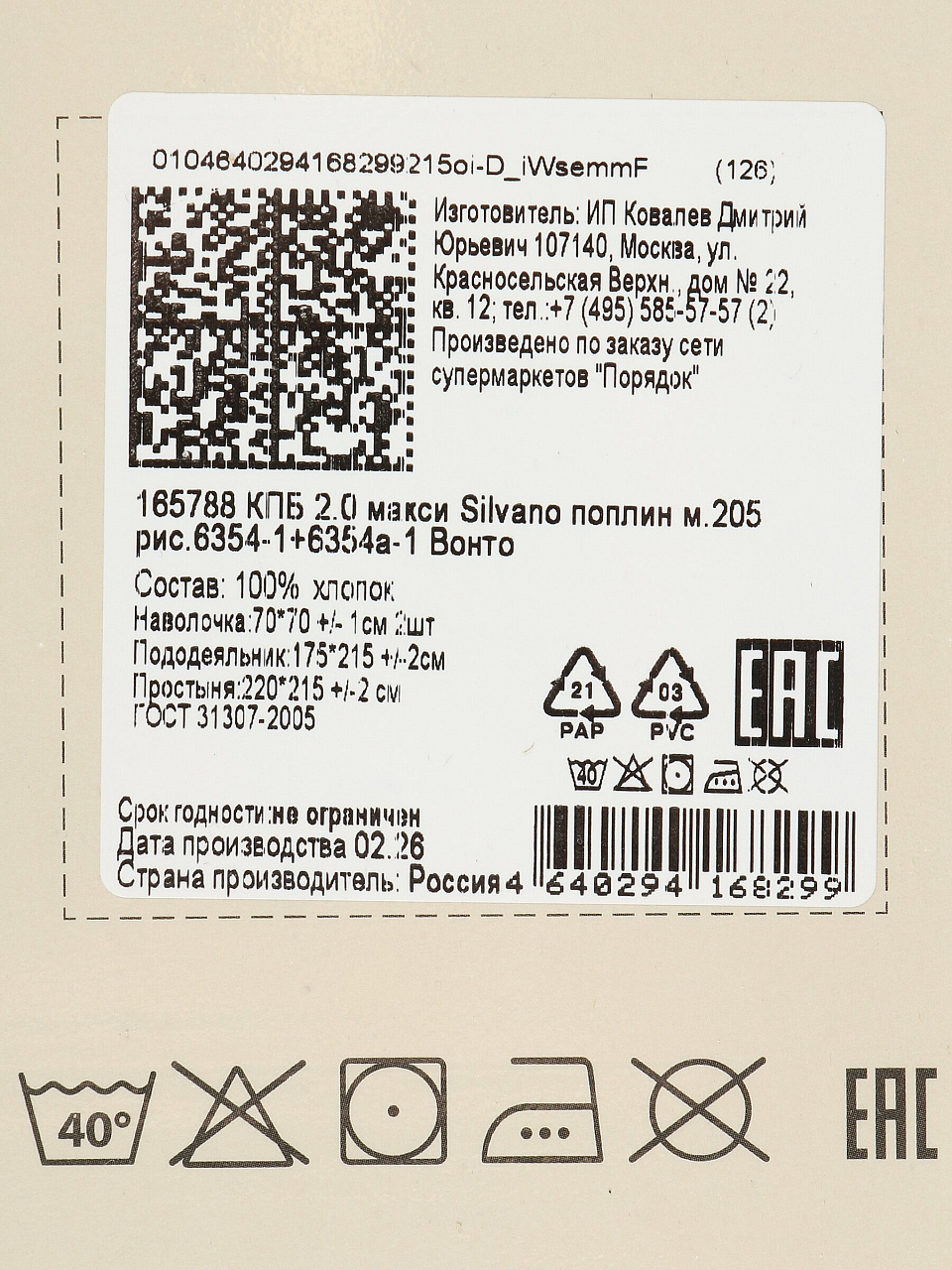 Вы можете приобрести «Постельное белье 2-спальное, простыня 215х220 см, 2 наволочки 70х70 см, пододеяльник 175х215 см, Silvano, поплин, Вонто» и другие товары в нашем интернет-магазине в Серпухове по низким ценам и с бесплатным самовывозом.